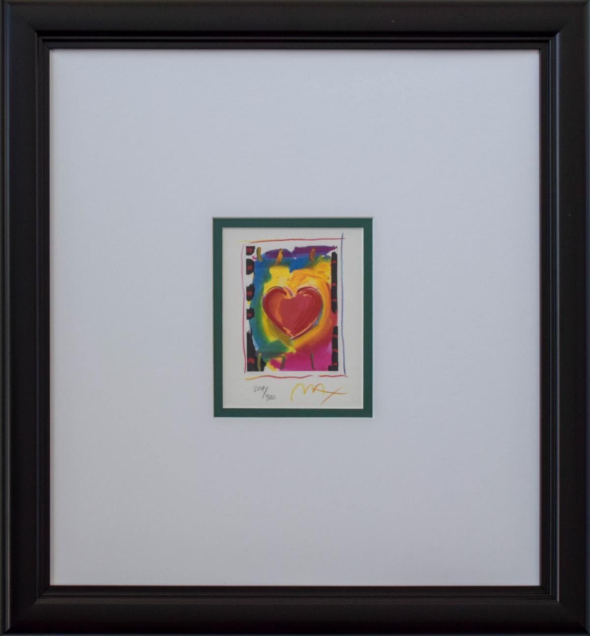 Artist: Peter Max. Medium: Original Lithograph. Title: Heart Series VI. Size (Unframed): 4" x 3". Size (Framed): 17" x 16". Certificate of Authenticity: Is included. Additional: Custom framed. Reference# 11065.