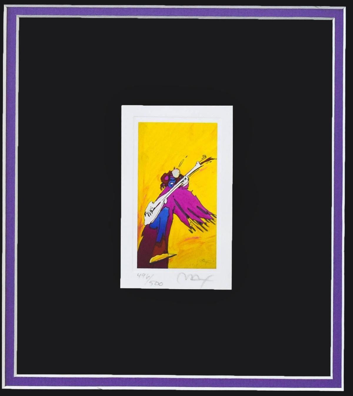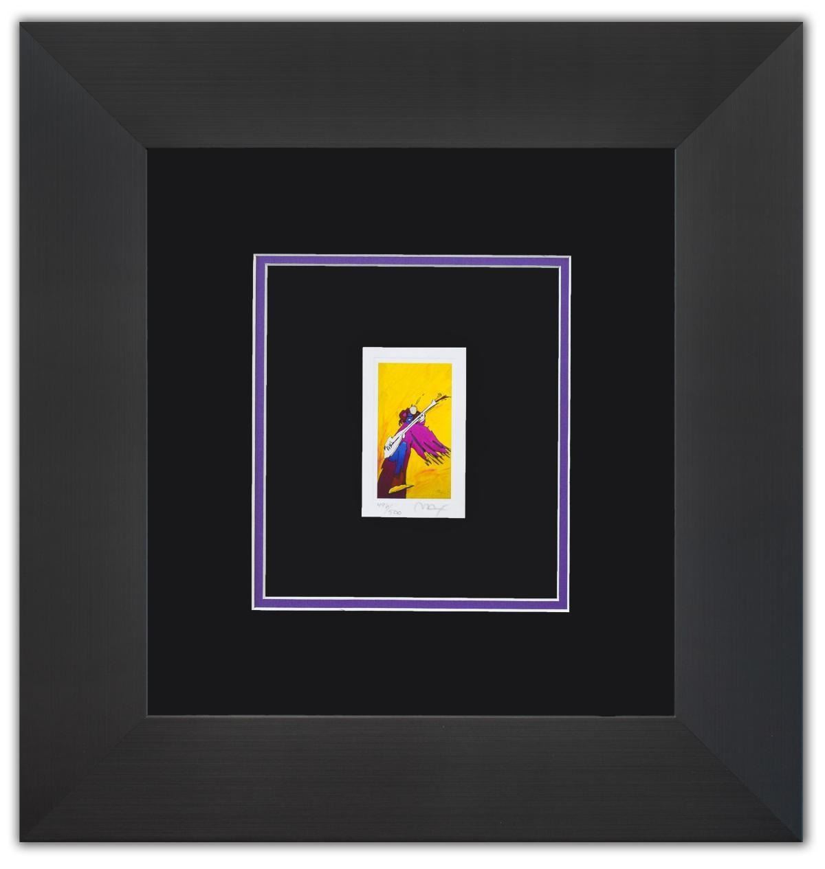 Artist: Peter Max. Medium: Original Lithograph. Title: Hendrix II (Mini). Size (Unframed): 4" x 2.5". Size (Framed): 20" x 19". Certificate of Authenticity: From Peter Max Studio. Additional: Custom framed. Reference# 15023.