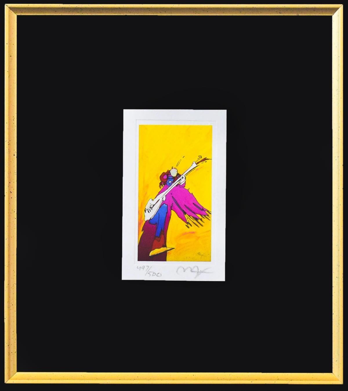 Artist: Peter Max. Medium: Original Lithograph. Title: Hendrix II (Mini). Size (Unframed): 4" x 2.5". Size (Framed): 18" x 17". Certificate of Authenticity: From Peter Max Studio. Additional: Custom framed. Reference# 14744.