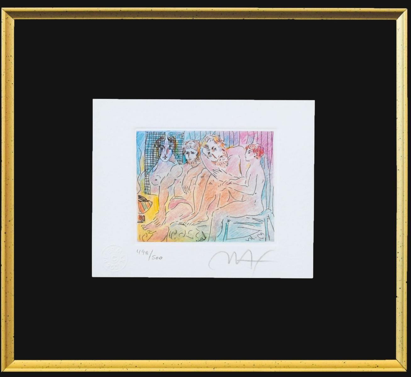 Artist: Peter Max. Medium: Original Lithograph. Title: Hommage to Picasso Vol. III #IX (Mini). Size (Unframed): 4" x 5". Size (Framed): 17.5" x 18". Certificate of Authenticity: From Peter Max Studio. Additional: Custom framed. Reference# 14770.