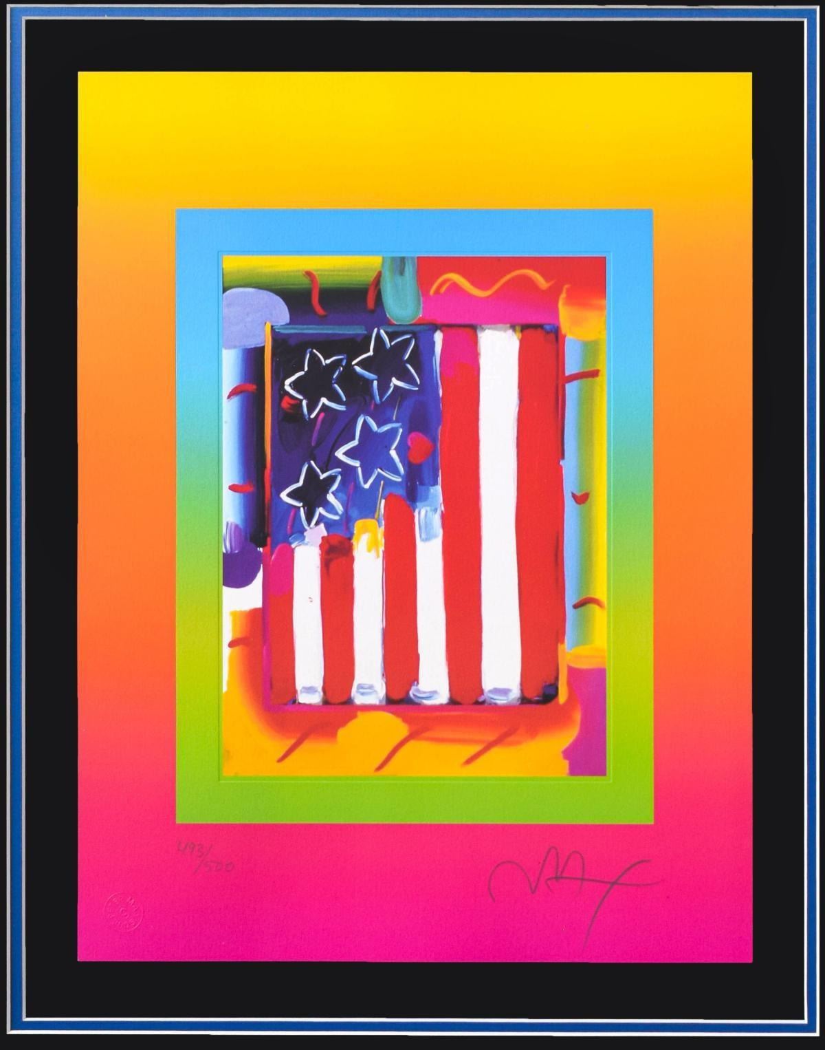 Artist: Peter Max. Medium: Original Lithograph. Title: LAG WITH HEART ON BIENDS III. Size (Unframed): 17" x 13". Size (Framed): 28" x 24". Certificate of Authenticity: From Peter Max Studio. Additional: Custom framed. Reference# 15884.