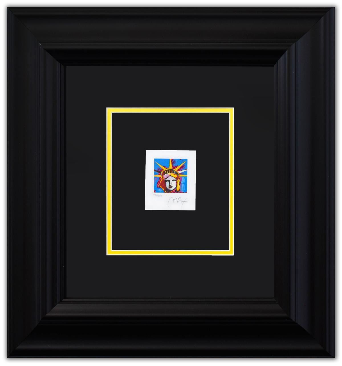 Artist: Peter Max. Medium: Original Lithograph. Title: LIBERTY HEAD I. Size (Unframed): 5" x 4.5". Size (Framed): 21" x 20". Certificate of Authenticity: From Peter Max Studio. Additional: Custom framed. Reference# 15919.