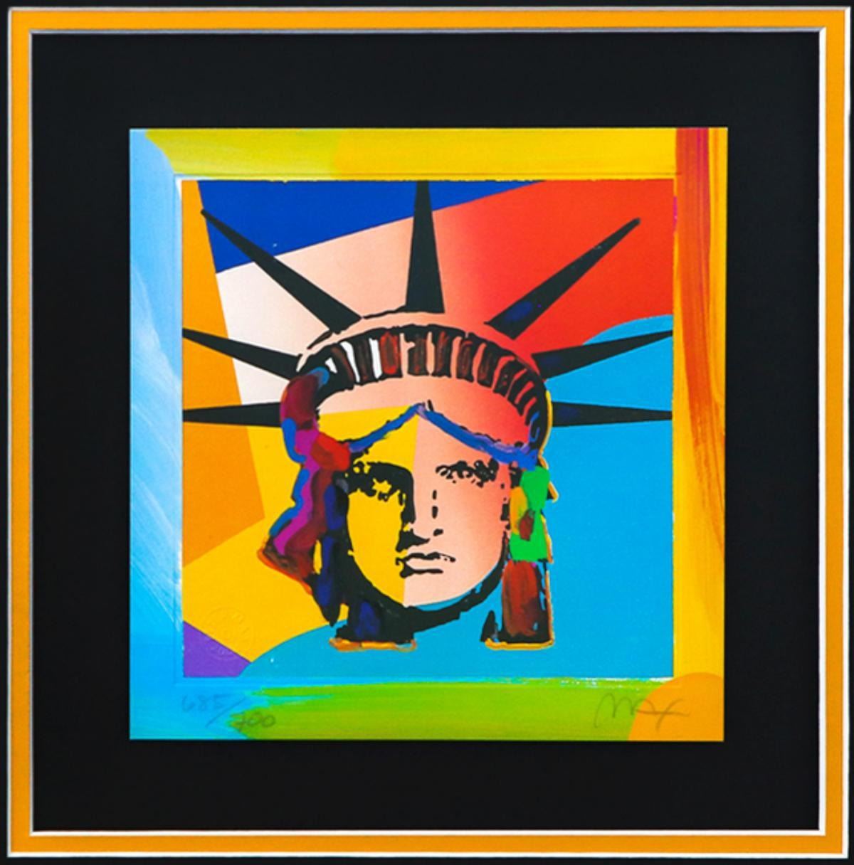 Artist: Peter Max. Medium: Original Lithograph. Title: LIBERTY HEAD (Mini). Size (Unframed): 7" x 7". Measures approx. (Framed): 20" x 20". Additional: Custom framed. Reference# 17798.