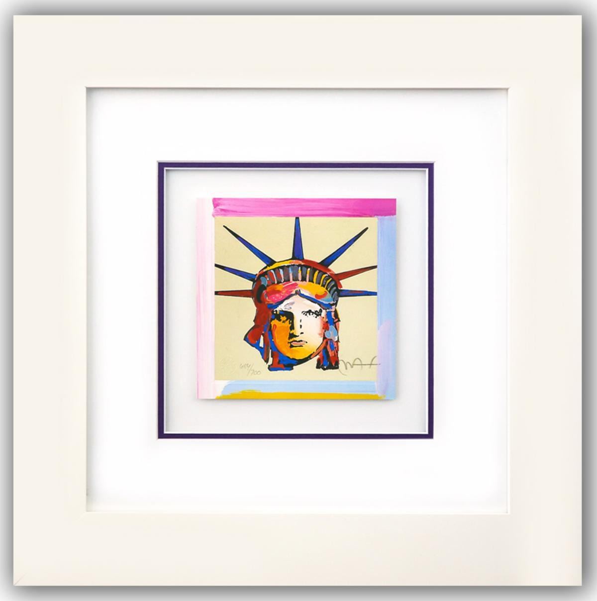 Artist: Peter Max. Medium: Original Lithograph. Title: LIBERTY HEAD (Mini). Size (Unframed): 7" x 7". Measures approx. (Framed): 20" x 20". Additional: Custom framed. Reference# 17797.