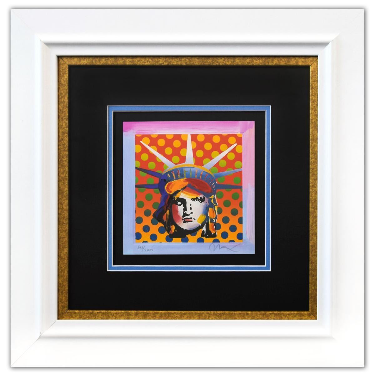 Artist: Peter Max. Medium: Original Lithograph. Title: Liberty Head XI (Mini). Size (Unframed): 6.5" x 6.5". Size (Framed): 18.5" x 18.5". Certificate of Authenticity: From Peter Max Studio. Additional: Custom framed. Reference# 14125.