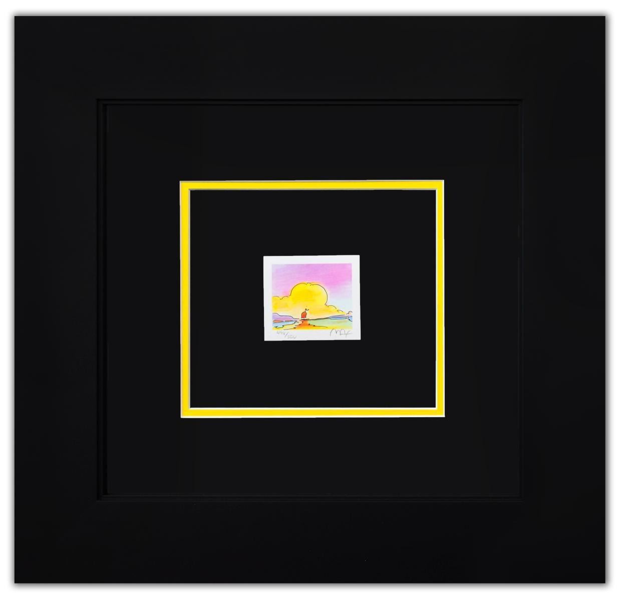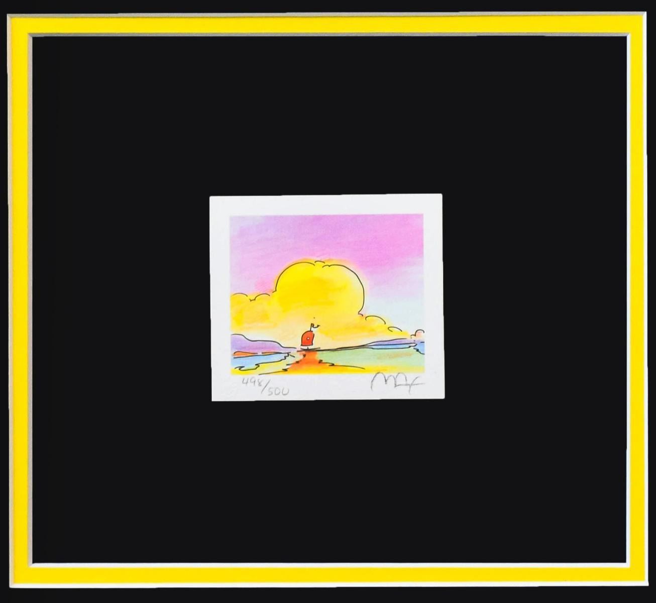 Artist: Peter Max. Medium: Original Lithograph. Title: Sailboat on the Horizon (Mini Series). Size (Unframed): 2.5" x 3". Size (Framed): 18" x 19". Certificate of Authenticity: From Peter Max Studio. Additional: Custom framed. Reference# 14766.