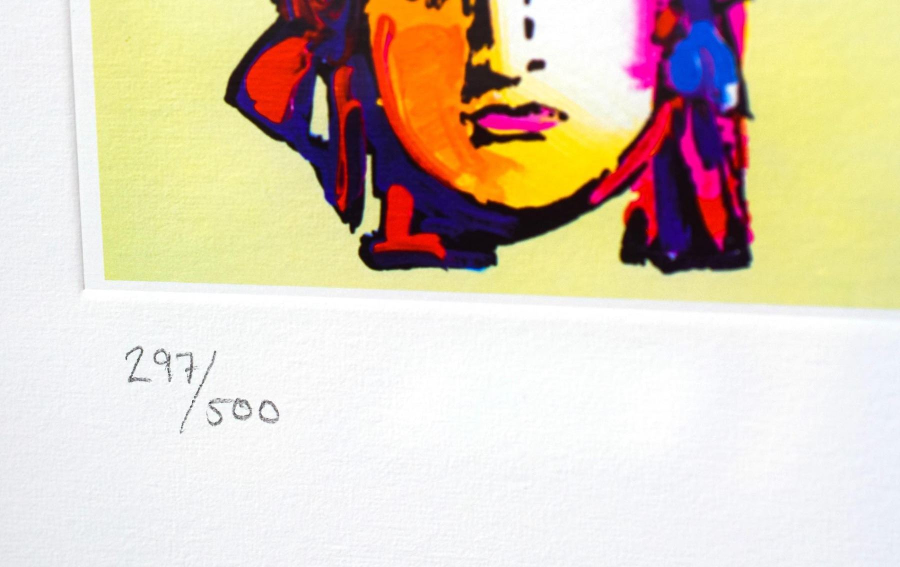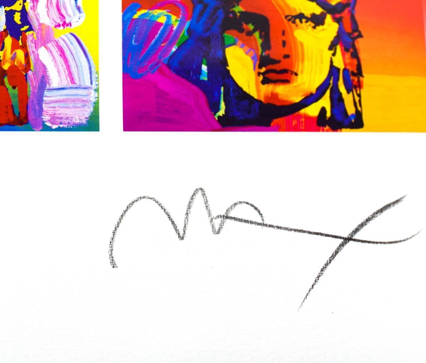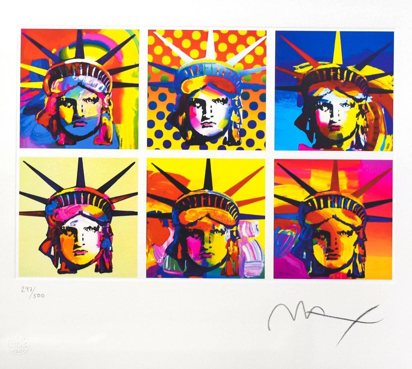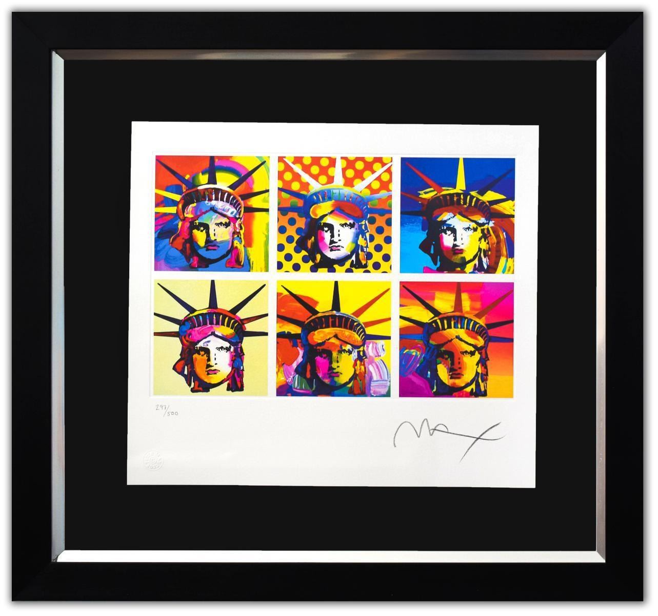 Artist: Peter Max. Medium: Original Lithograph. Title: Six Liberties. Size (Unframed): 13" x 15". Size (Framed): 22" x 24". Certificate of Authenticity: From Peter Max Studio. Additional: Custom framed. Reference# 15416.