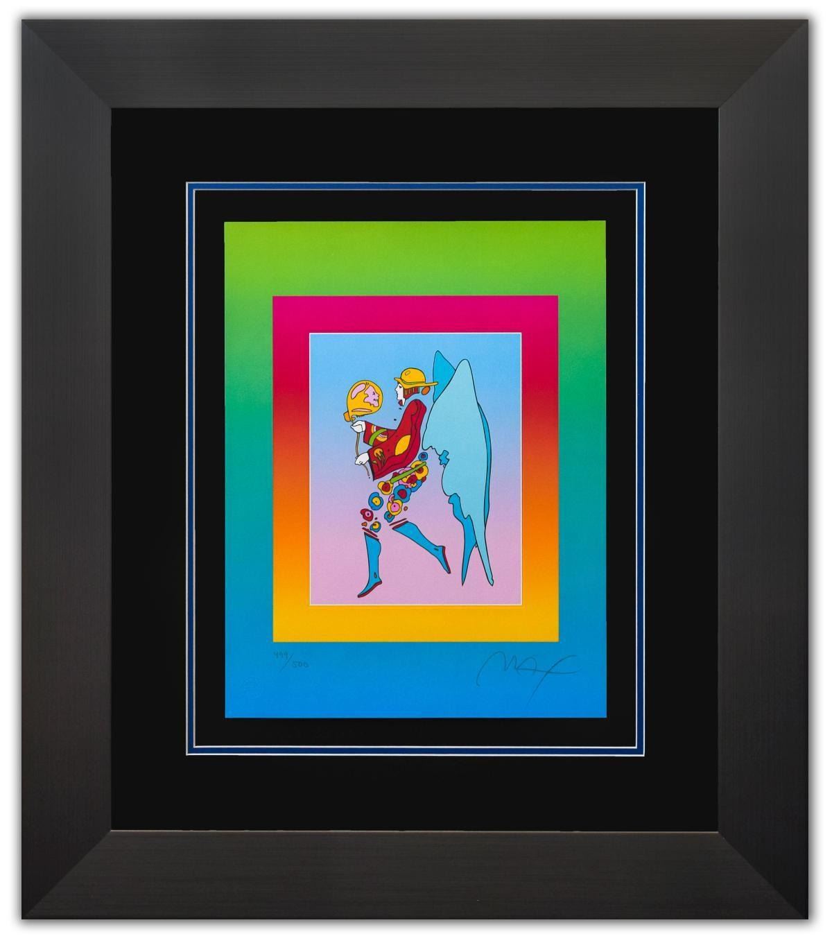 Artist: Peter Max. Medium: Original Lithograph. Title: Tip Toe Floating on Blends II. Size (Unframed): 17" x 13". Size (Framed): 31" x 27". Certificate of Authenticity: From Peter Max Studio. Additional: Custom framed. Reference# 14674.