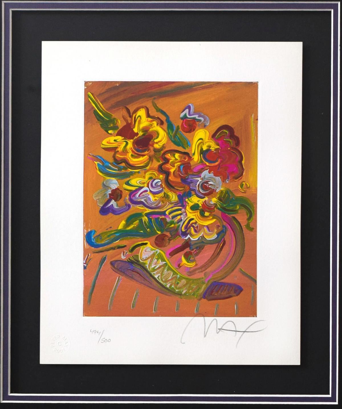 Artist: Peter Max. Medium: Original Lithograph. Title: VASE OF FLOWERS XI. Size (Unframed): 11" x 9". Size (Framed): 24" x 22". Certificate of Authenticity: From Peter Max Studio. Additional: Custom framed. Reference# 15900.
