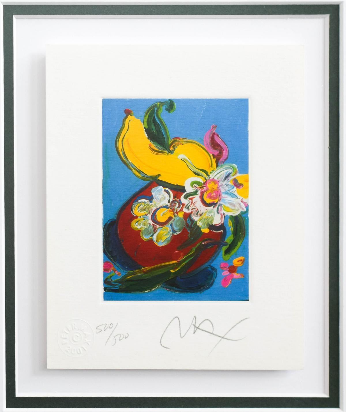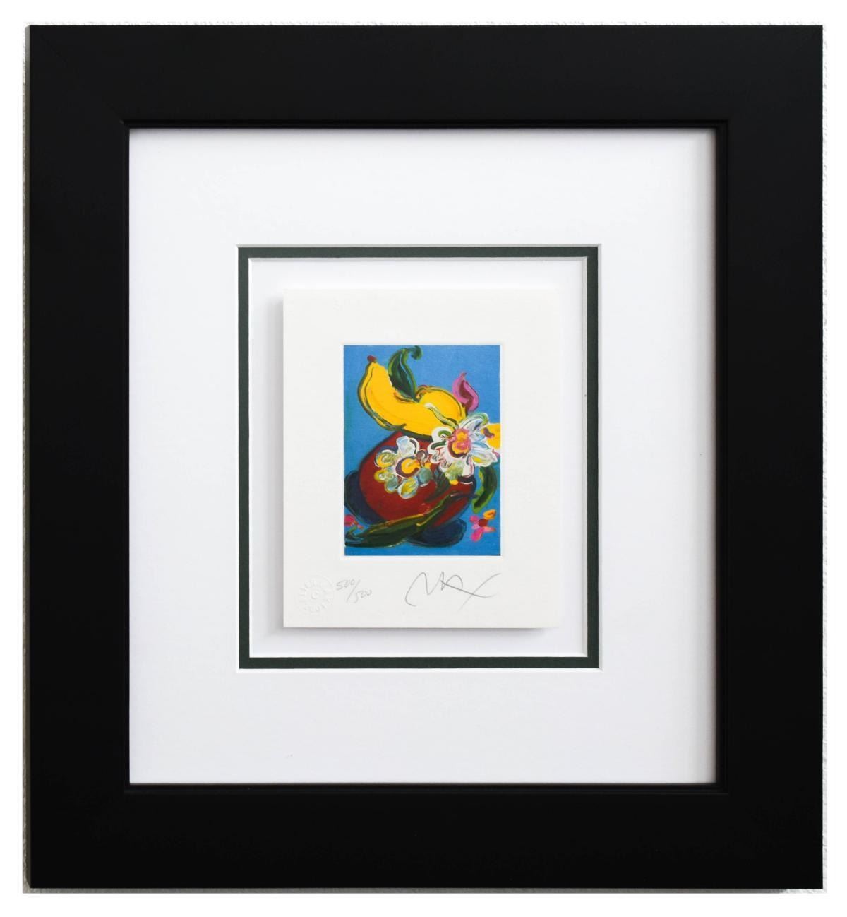Artist: Peter Max. Medium: Original Lithograph. Title: Vase Of Flowers IV (Mini). Size (Unframed): 6" x 5". Size (Framed): 15.5" x 14". Limited Edition: Numbered 500/500. Certificate of Authenticity: From Peter Max Studio. Additional: Custom framed. Reference# 11754.