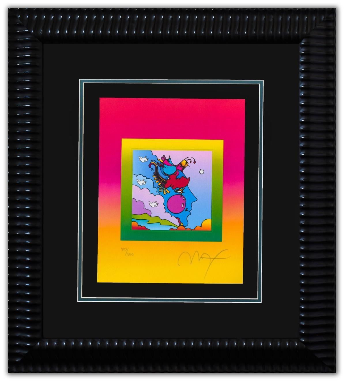 Artist: Peter Max. Medium: Original Lithograph. Title: Woodstock Profile on Blends. Size (Unframed): 12" x 10". Size (Framed): 27" x 24". Certificate of Authenticity: From Peter Max Studio. Additional: Custom framed. Reference# 15174.