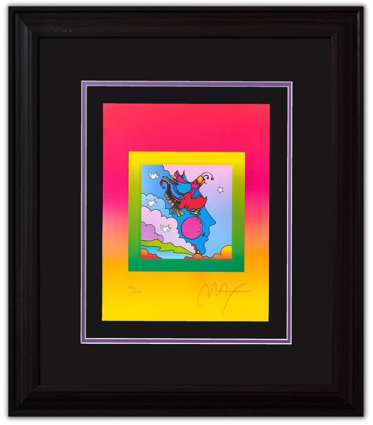 Artist: Peter Max. Medium: Original Lithograph. Title: Woodstock Profile on Blends. Size (Unframed): 12.5" x 10". Size (Framed): 24" x 21". Certificate of Authenticity: From Peter Max Studio. Additional: Custom framed. Reference# 15895.