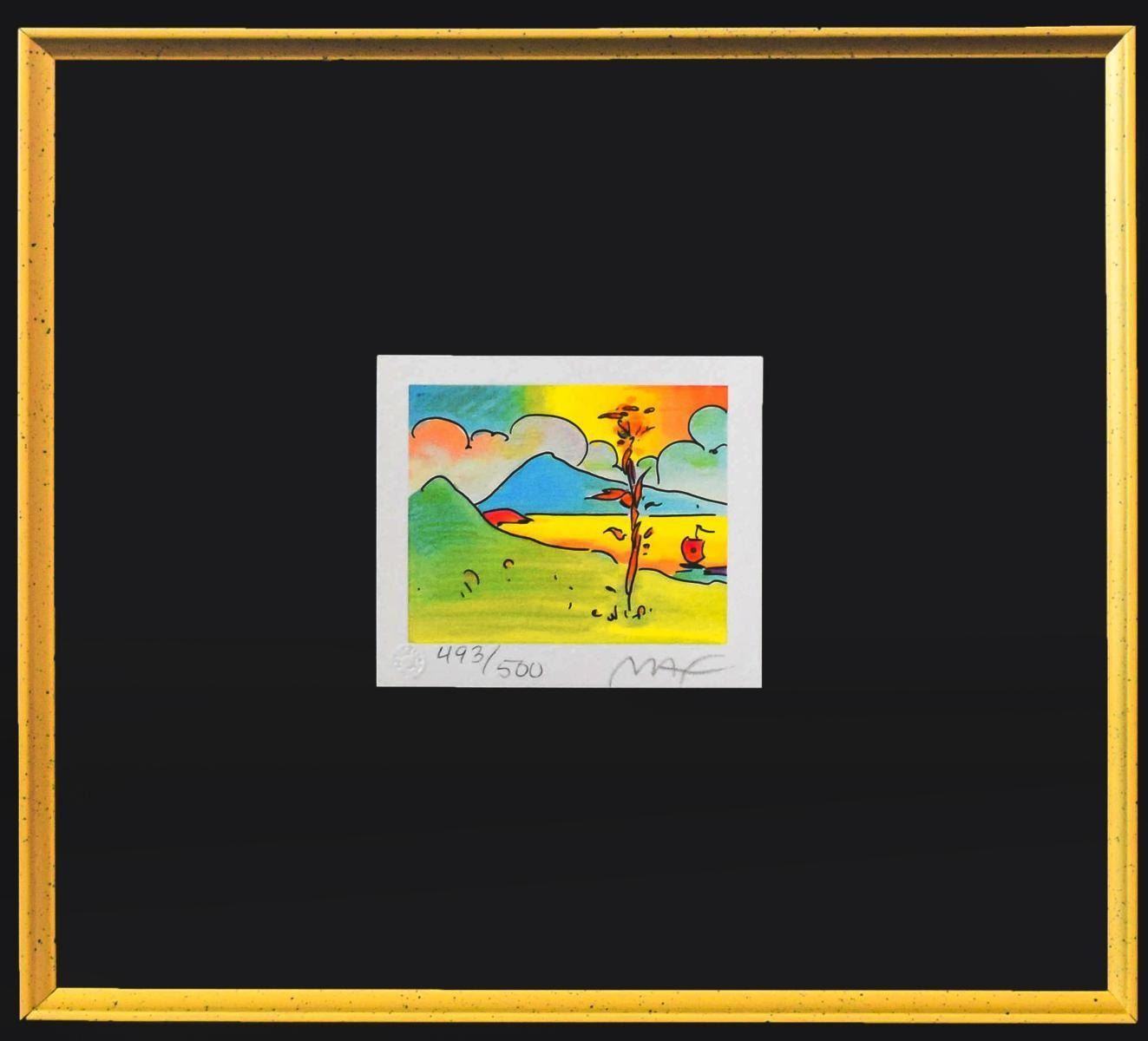 Artist: Peter Max. Medium: Original Lithograph. Size (Unframed): 2.5" x 3". Size (Framed): 16" x 17". Certificate of Authenticity: From Peter Max Studio. Additional: Custom framed. Reference# 14632.