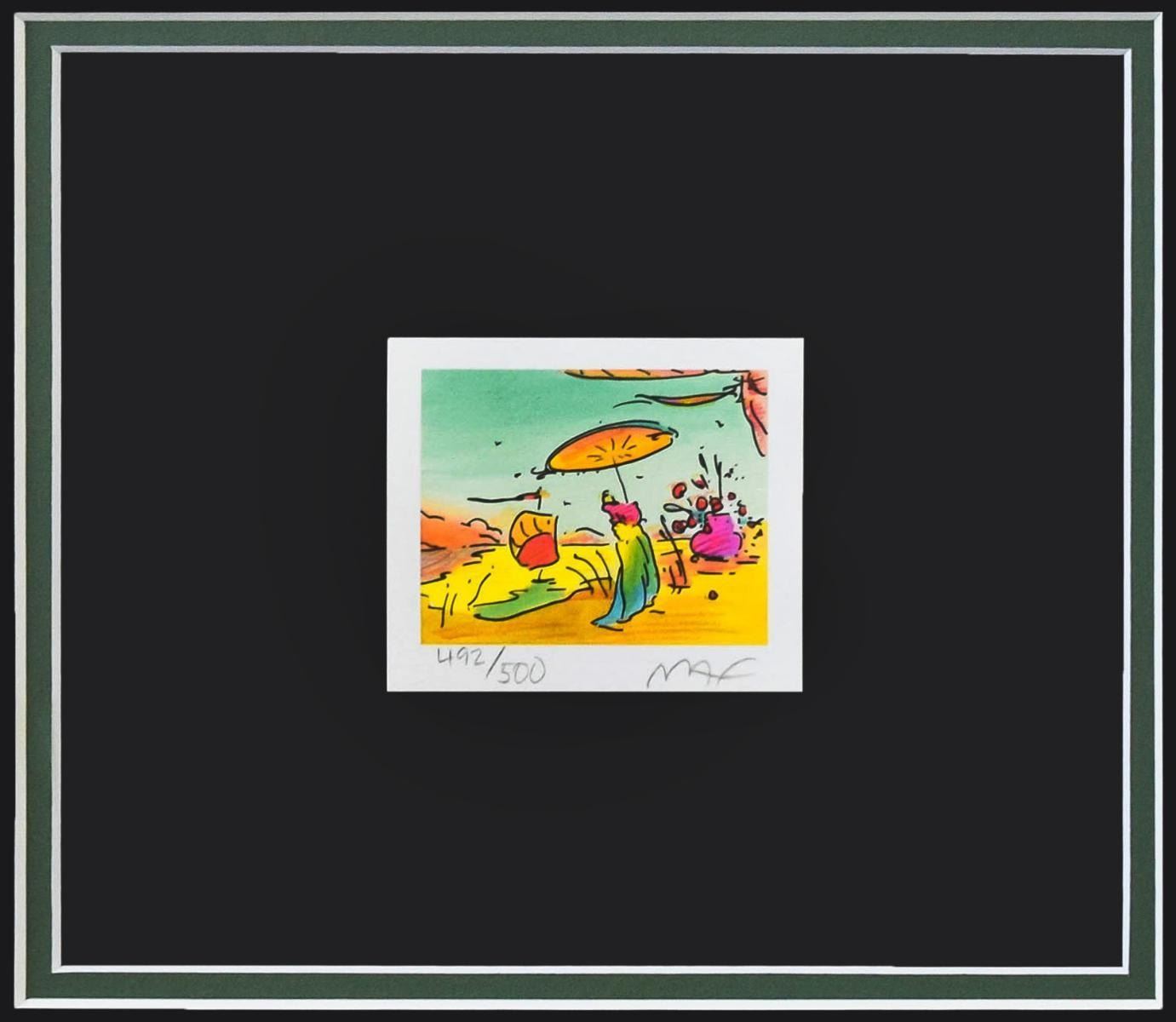 Artist: Peter Max. Medium: Original Lithograph. Size (Unframed): 2.5" x 3". Size (Framed): 19" x 20". Certificate of Authenticity: From Peter Max Studio. Additional: Custom framed. Reference# 15020.