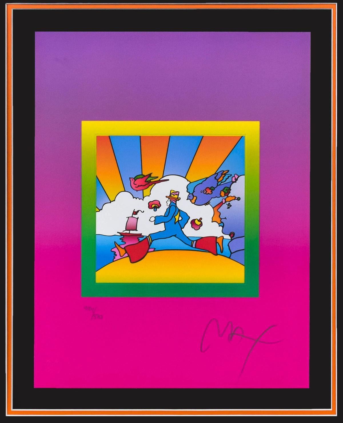 Artist: Peter Max. Medium: Original Lithograph. Size (Unframed): 17" x 13". Size (Framed): 30" x 26.5". Certificate of Authenticity: From Peter Max Studio. Additional: Custom framed. Reference# 15037.