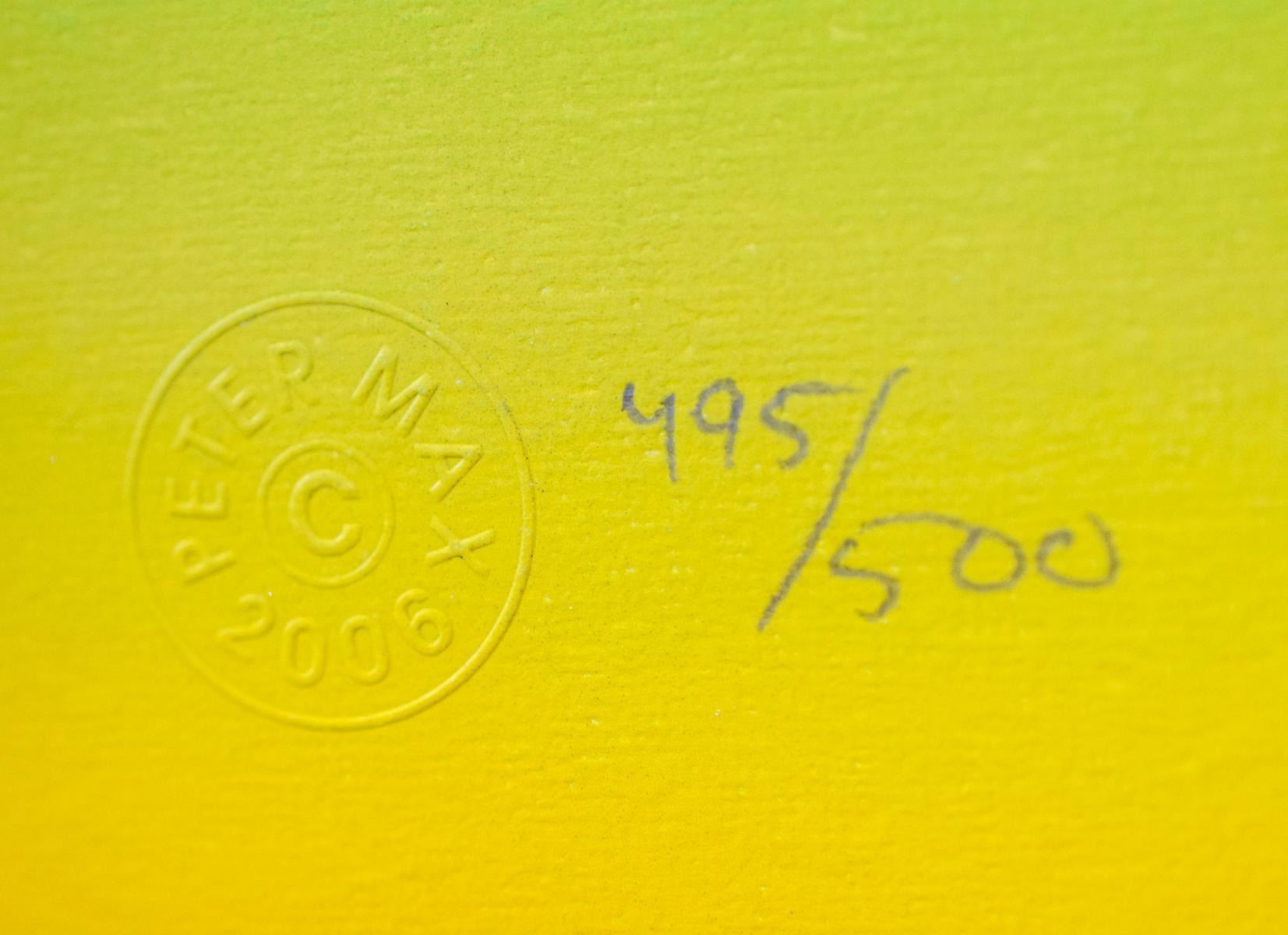 Artist: Peter Max. Medium: Original Lithograph. Size (Unframed): 10" x 13". Size (Framed): 24" x 28". Certificate of Authenticity: From Peter Max Studio. Additional: Custom framed. Reference# 15303.