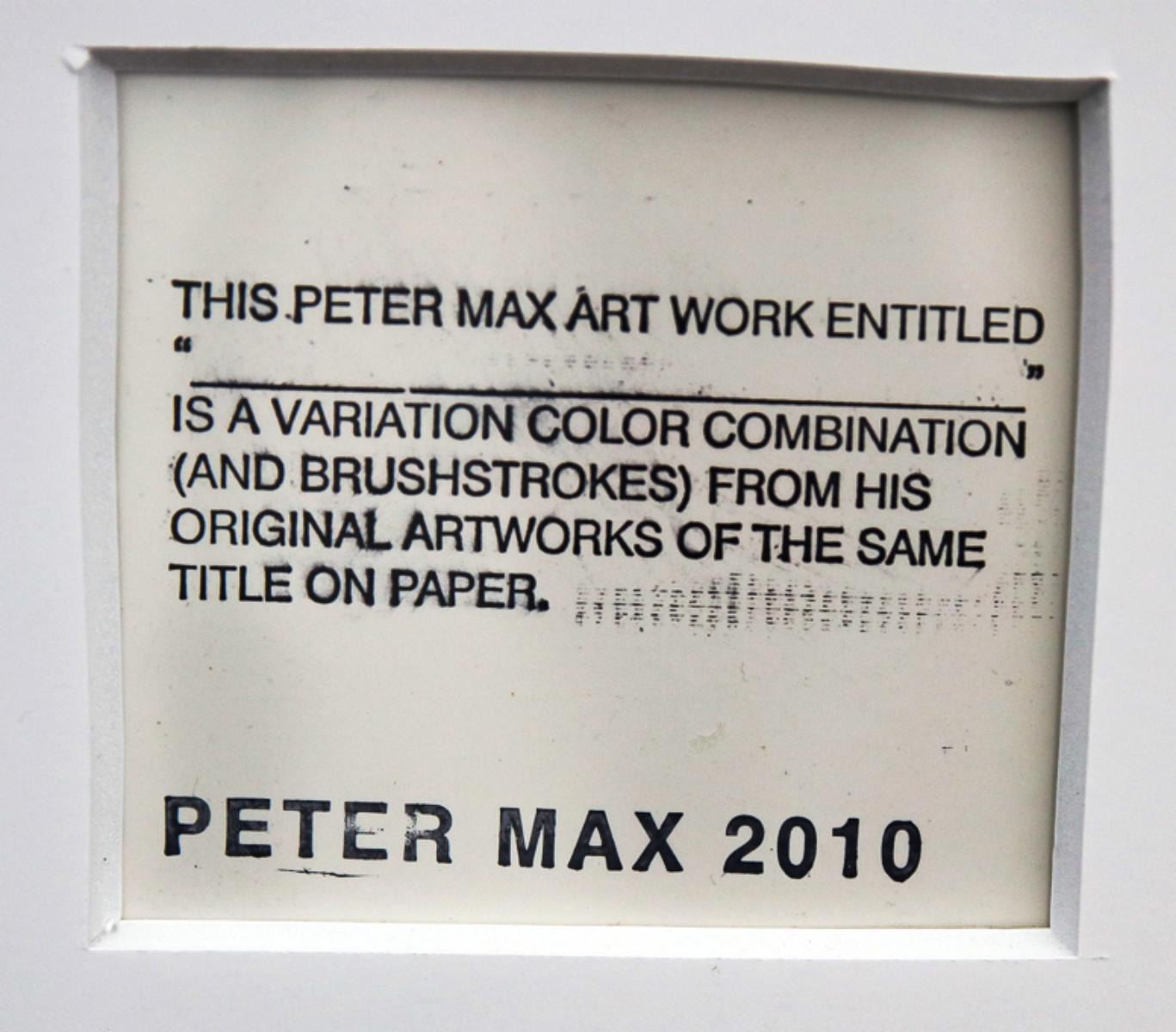 Artist: Peter Max. Medium: Original Mixed Media. Title: Better World. Size (Unframed): 36" x 24". Measures approx. (Framed): 46" x 34". Certificate of Authenticity: Is included. Additional: Custom framed. Reference# 17901.