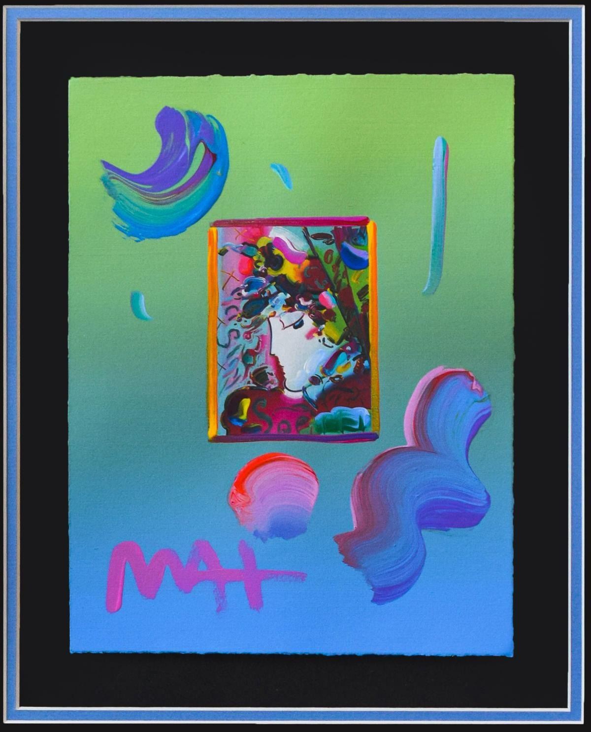 Artist: Peter Max. Medium: Original Mixed Media. Title: Blushing Beauty Ver. I #63. Size (Unframed): 11" x 8.5". Size (Framed): 26" x 23.5". Certificate of Authenticity: From Peter Max Studio. Additional: Custom framed. Reference# 14698.