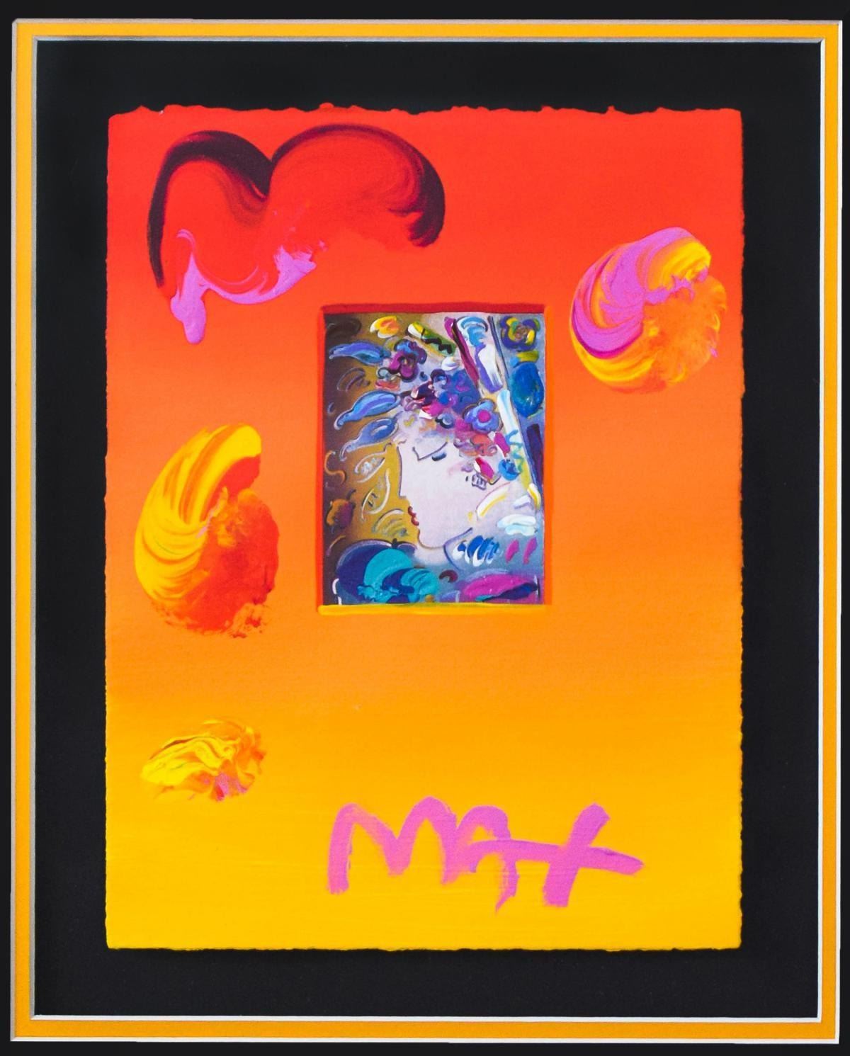 Artist: Peter Max. Medium: Original Mixed Media. Title: Blushing Beauty Ver. I #79. Size (Unframed): 11" x 8.5". Size (Framed): 25" x 23". Certificate of Authenticity: From Peter Max Studio. Additional: Custom framed. Reference# 14595.