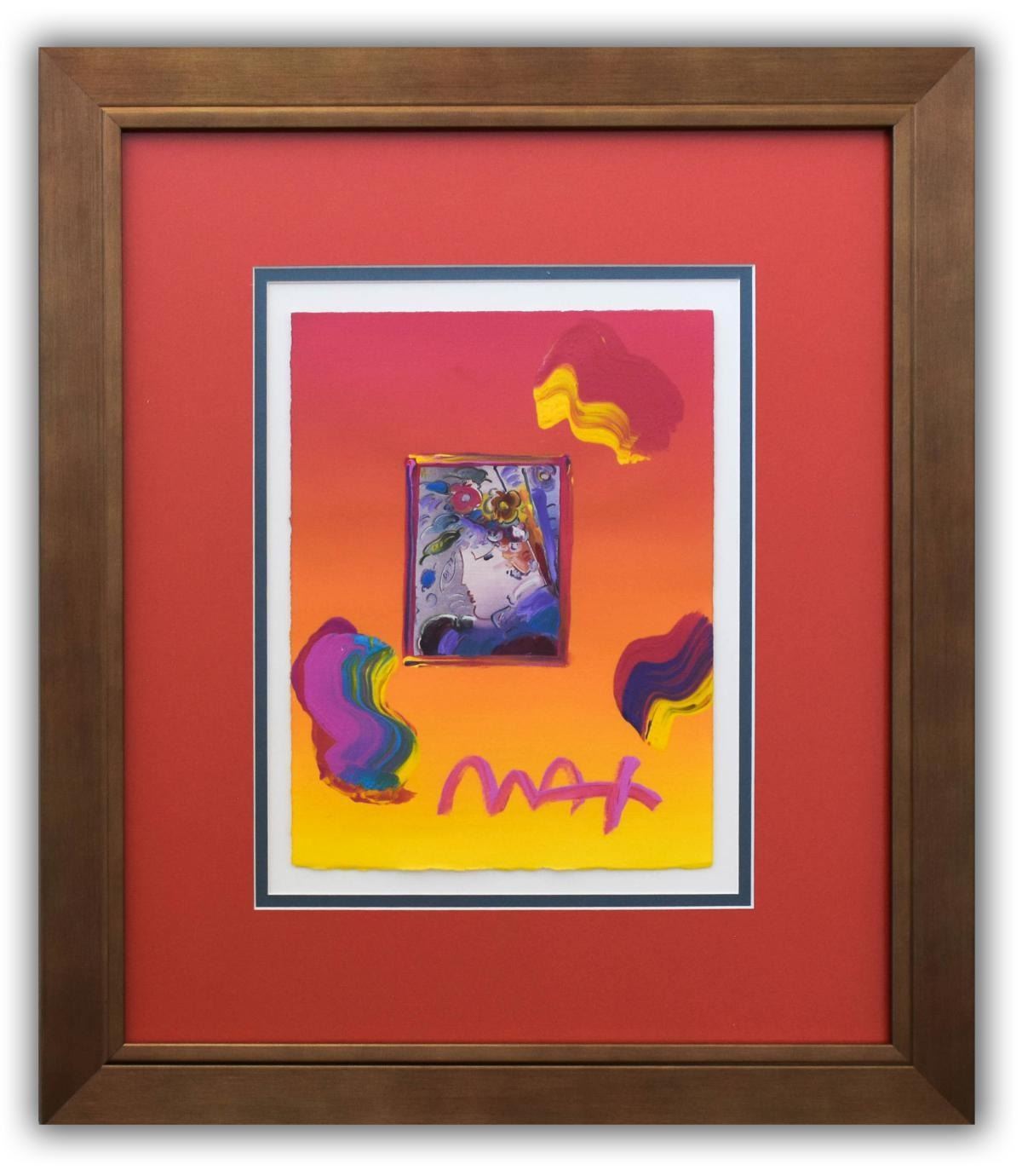 Artist: Peter Max. Medium: Original Mixed Media. Title: Blushing Beauty. Size (Unframed): 11" x 8.5". Size (Framed): 21.5" x 19". Certificate of Authenticity: From Peter Max Studio. Additional: Custom Framed. Catalogue#: 412309. Reference# 12705.