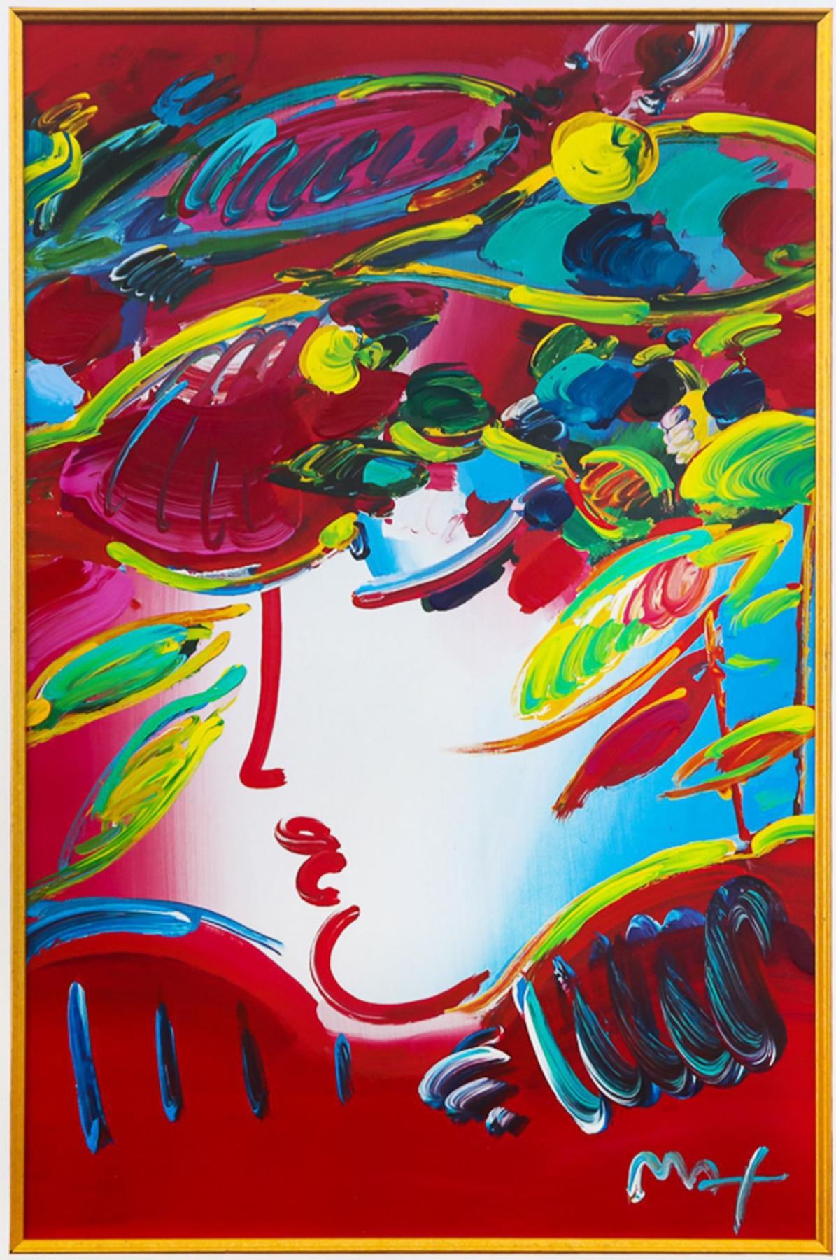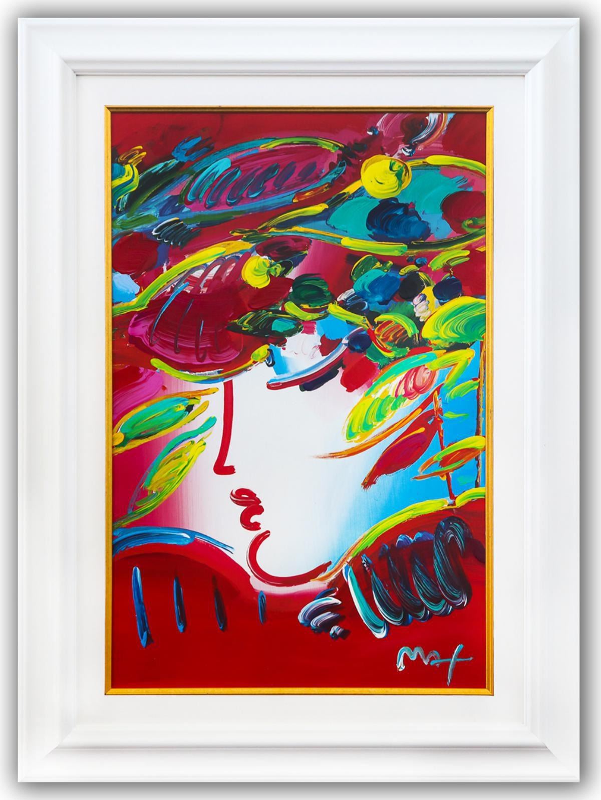 Artist: Peter Max. Medium: Original Mixed Media. Title: Blushing Beauty. Size (Unframed): 36" x 24". Measures approx. (Framed): 47" x 34". Certificate of Authenticity: Is included. Additional: Custom framed. Reference# 17330.
