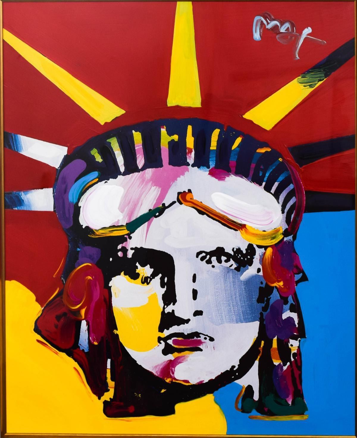 Artist: Peter Max. Medium: Original Mixed Media. Title: Delta (Liberty) 2006 #1. Size (Unframed): 30" x 24". Size (Framed): 38.5" x 33". Certificate of Authenticity: From Peter Max Studio. Additional: Only one of a kind. Custom framed. Catalogue#: 163519. Reference# 11835.