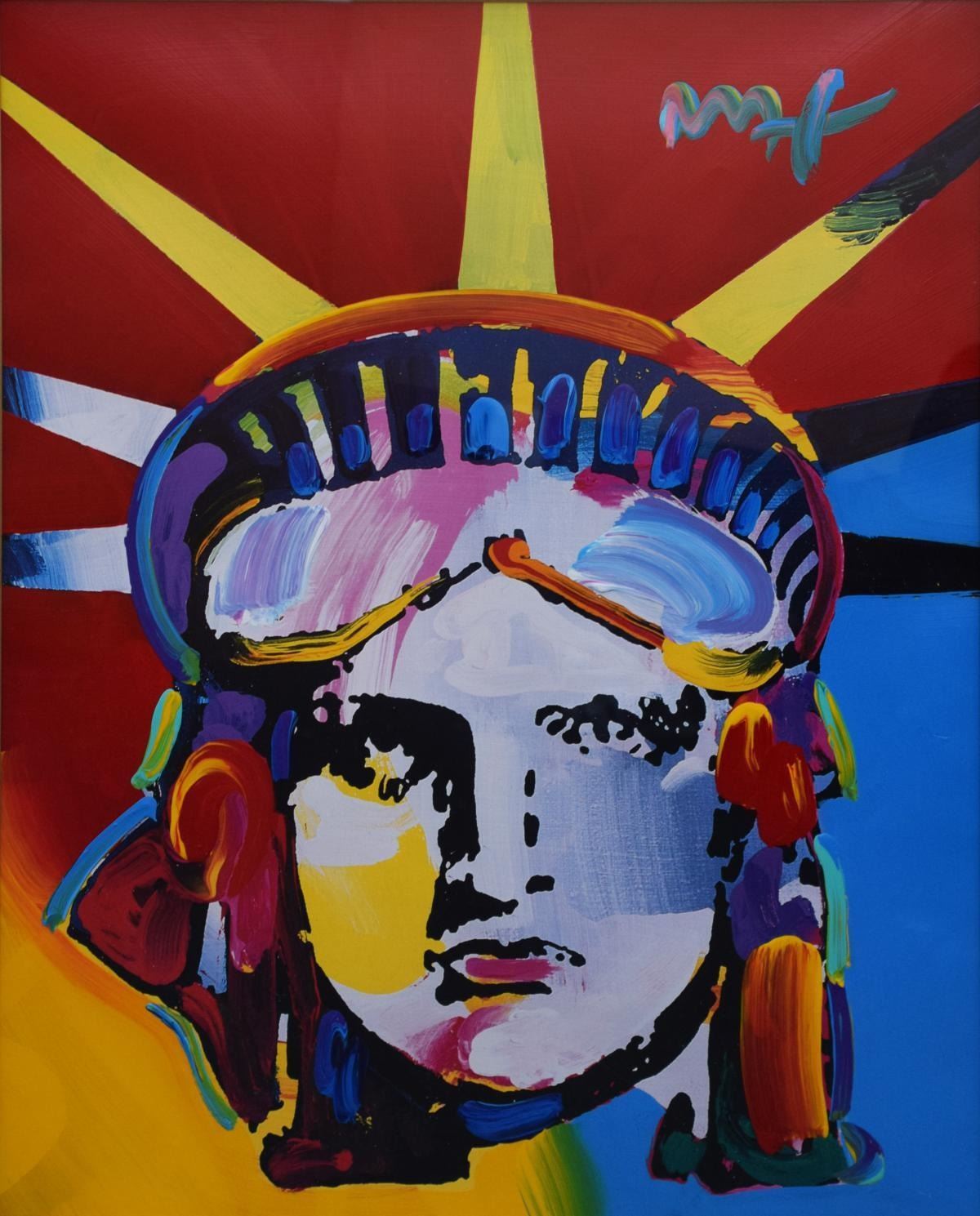 Artist: Peter Max. Medium: Original Mixed Media. Title: Delta. Size (Unframed): 29.5" x 24". Size (Framed): 42" x 36". Certificate of Authenticity: From Park West Gallery. Additional: Only one of a kind. Custom framed. Certificate of authnticity and Apprisal from Park West Gallery are included. Catalogue#: 962121896. Reference# 11377.