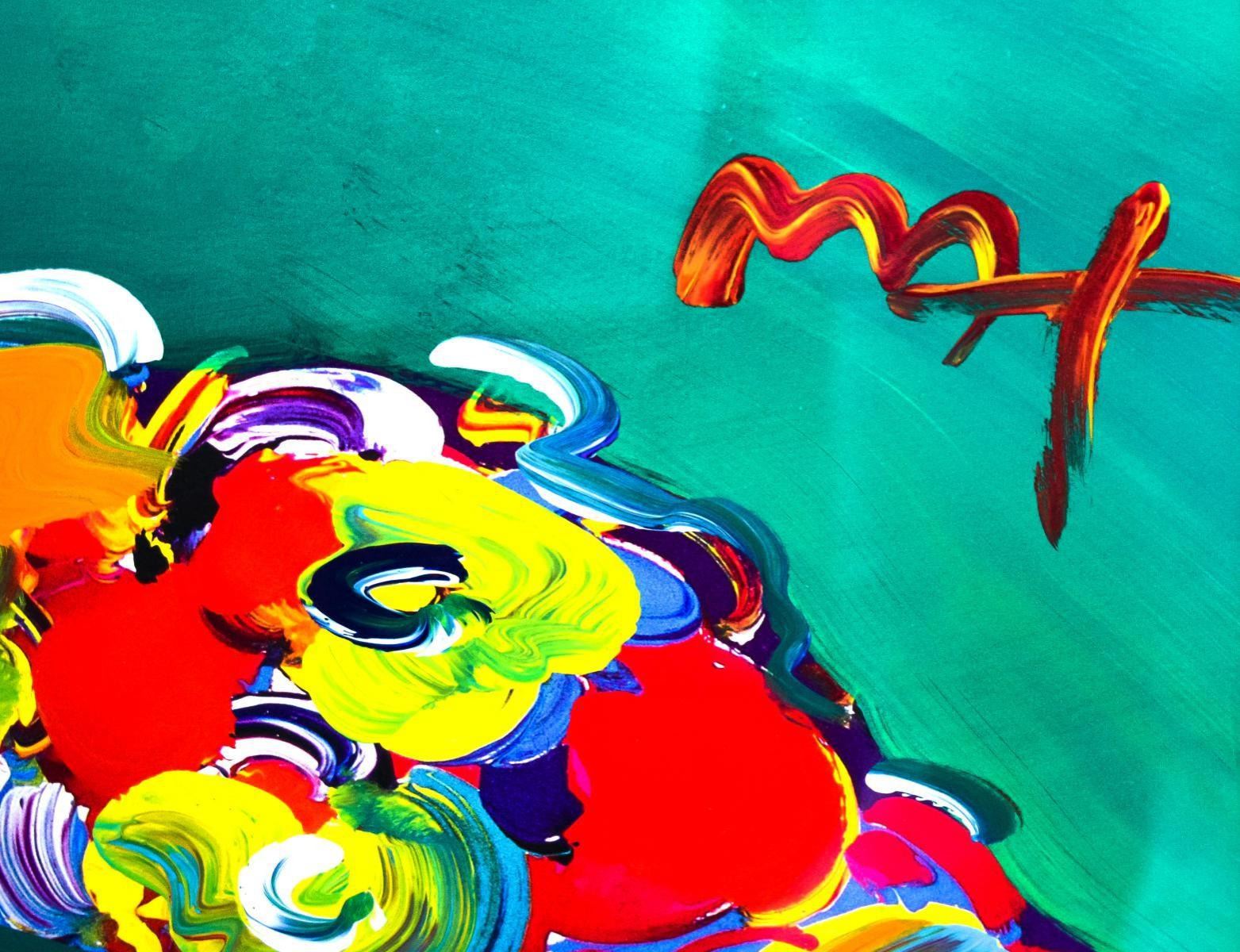 Artist: Peter Max. Medium: Original Mixed Media. Title: Friends. Size (Unframed): 28" x 32". Measures approx. (Framed): 38" x 43". Certificate of Authenticity: Is included. Additional: Custom framed. Peter Max Registration Number on verso. Reference# 16338.