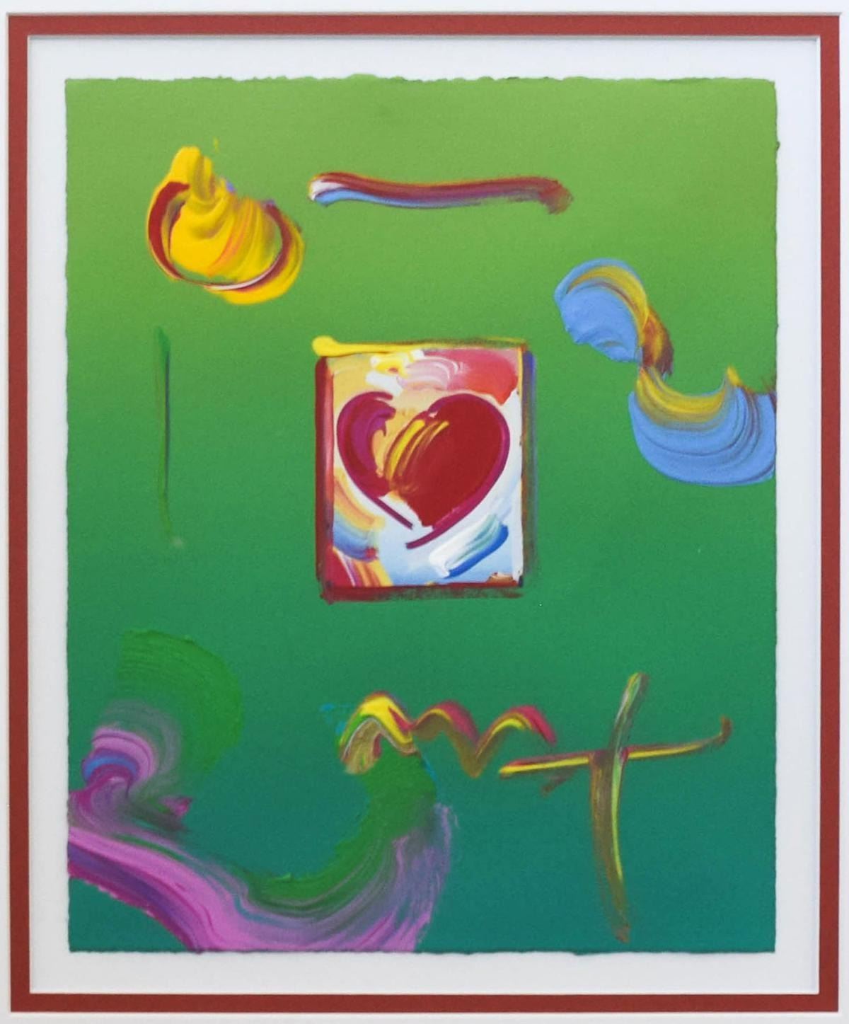 Artist: Peter Max. Medium: Original Mixed Media. Title: Heart Series 2008 Ver. I #355. Size (Unframed): 11" x 8.5". Size (Framed): 22" x 20". Certificate of Authenticity: From Peter Max Studio. Additional: Custom Framed. Catalogue#: 292190. Reference# 12709.