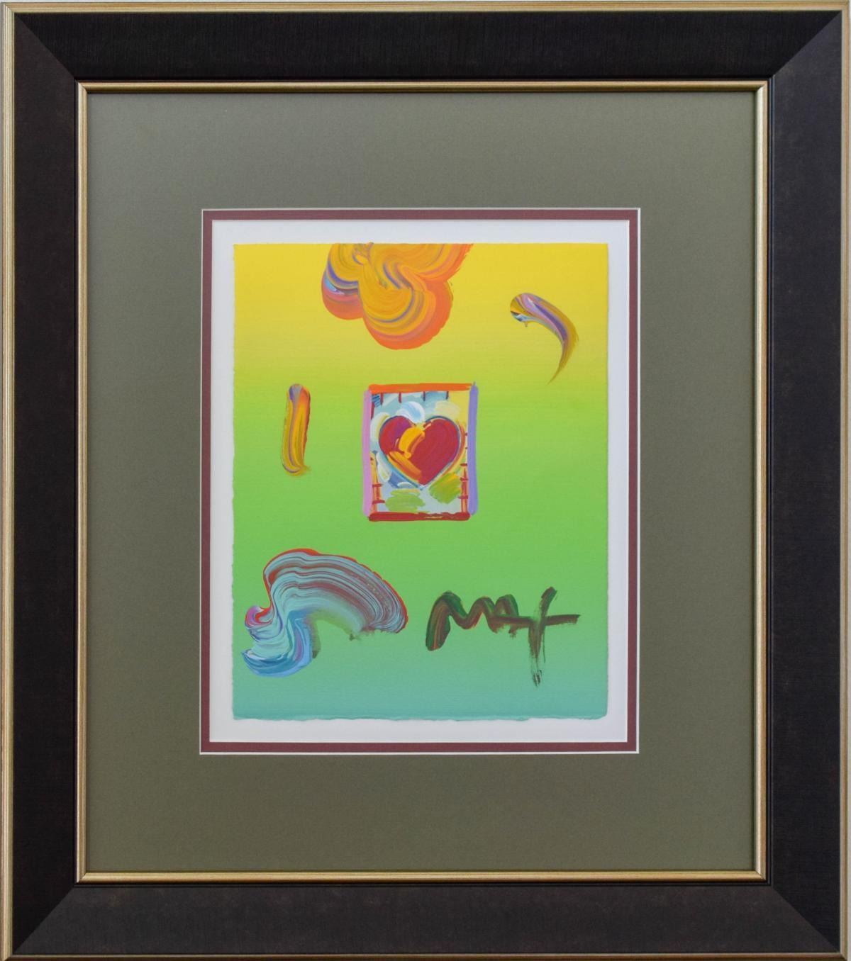 Artist: Peter Max. Medium: Original Mixed Media. Title: Heart Series 2009 Ver. I #793. Size (Unframed): 11" x 8.5". Size (Framed): 22.5" x 20.5". Certificate of Authenticity: From Max Studios. Catalogue# 315612. Additional: Only one of a kind. Custom framed. . Reference# 11055.