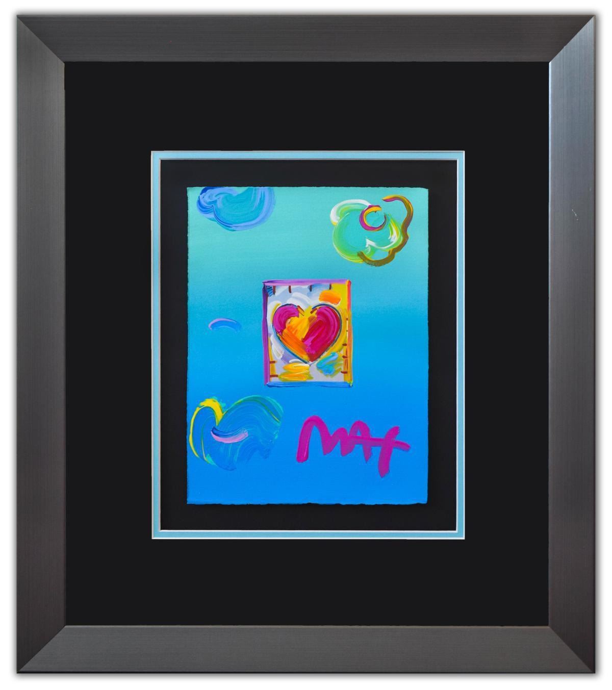 Artist: Peter Max. Medium: Original Mixed Media. Title: Heart Series Ver. I #230. Size (Unframed): 11" x 8.5". Size (Framed): 23" x 21". Certificate of Authenticity: From Peter Max Studio. Additional: Custom framed. Reference# 14658.
