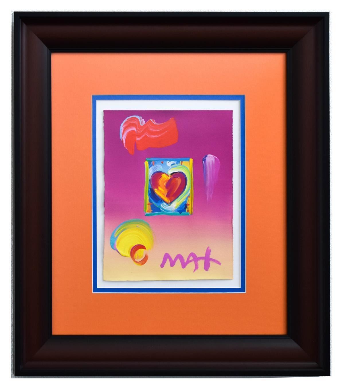 Artist: Peter Max. Medium: Original Mixed Media. Title: Heart Series Ver. I #257. Size (Unframed): 11" x 8.5". Size (Framed): 23.5" x 20.5". Certificate of Authenticity: From Peter Max Studio. Additional: Only one of a kind. Custom framed. Catalogue#: 412285. Reference# 11775.