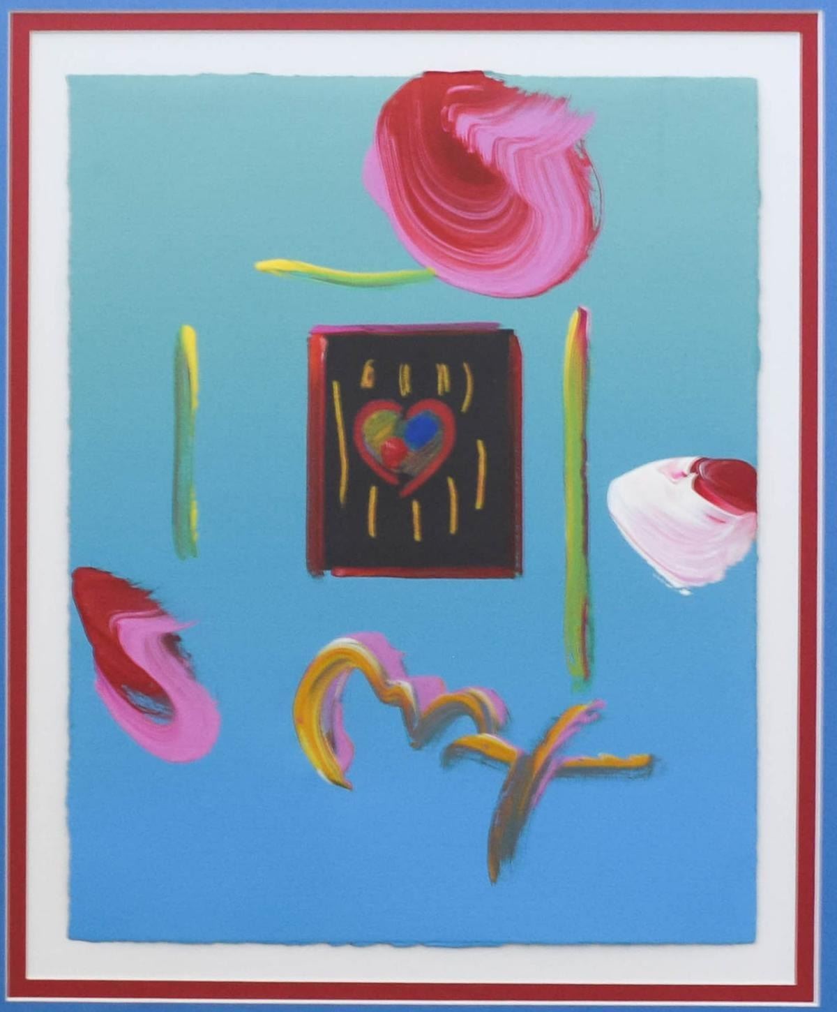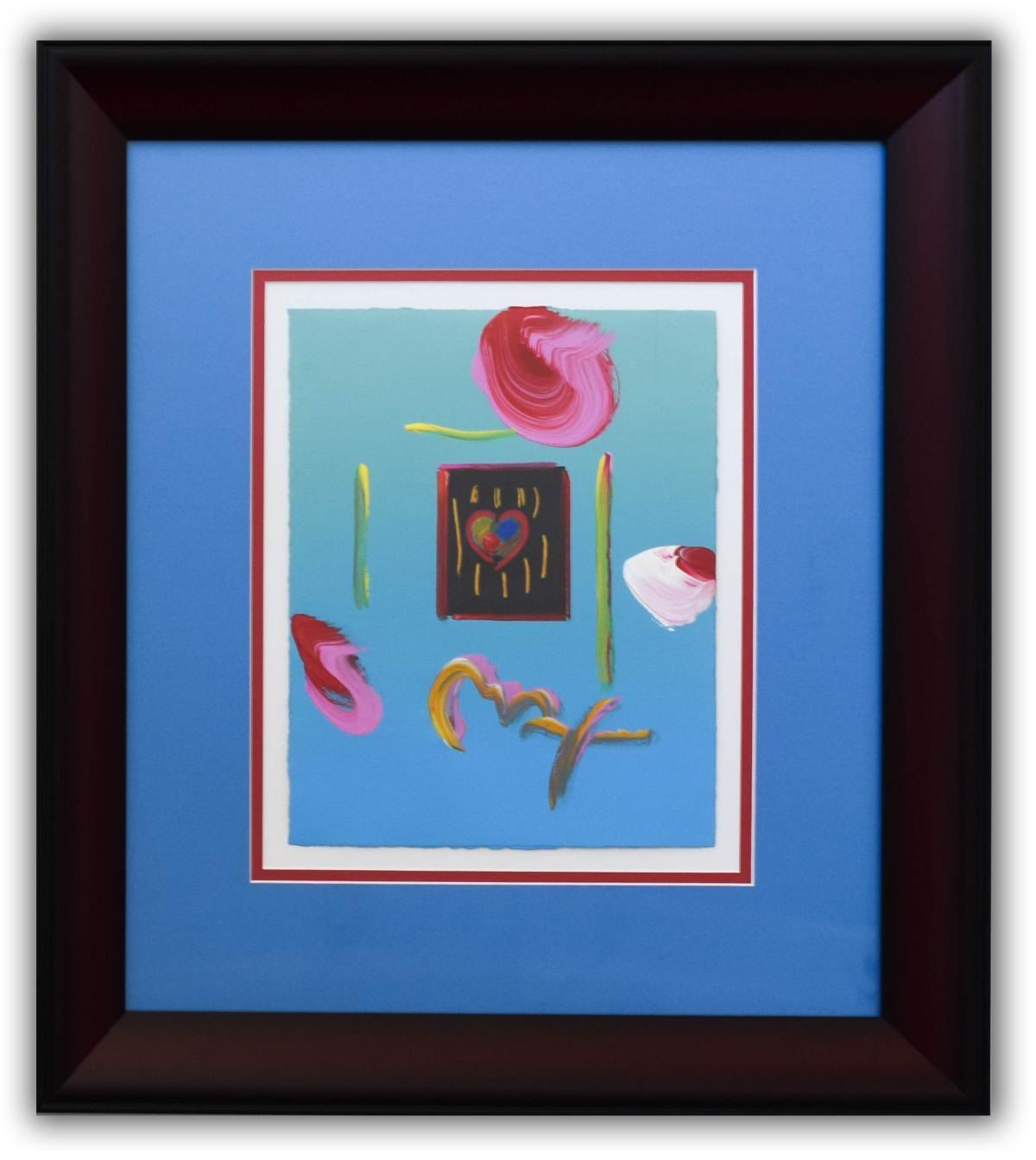 Artist: Peter Max. Medium: Original Mixed Media. Title: Heart Suite II: Heart IV Ver. I#133. Size (Unframed): 11" x 8.5". Size (Framed): 22" x 21". Certificate of Authenticity: From Peter Max Studio. Additional: Custom Framed. Catalogue#: 139024. Reference# 12693.