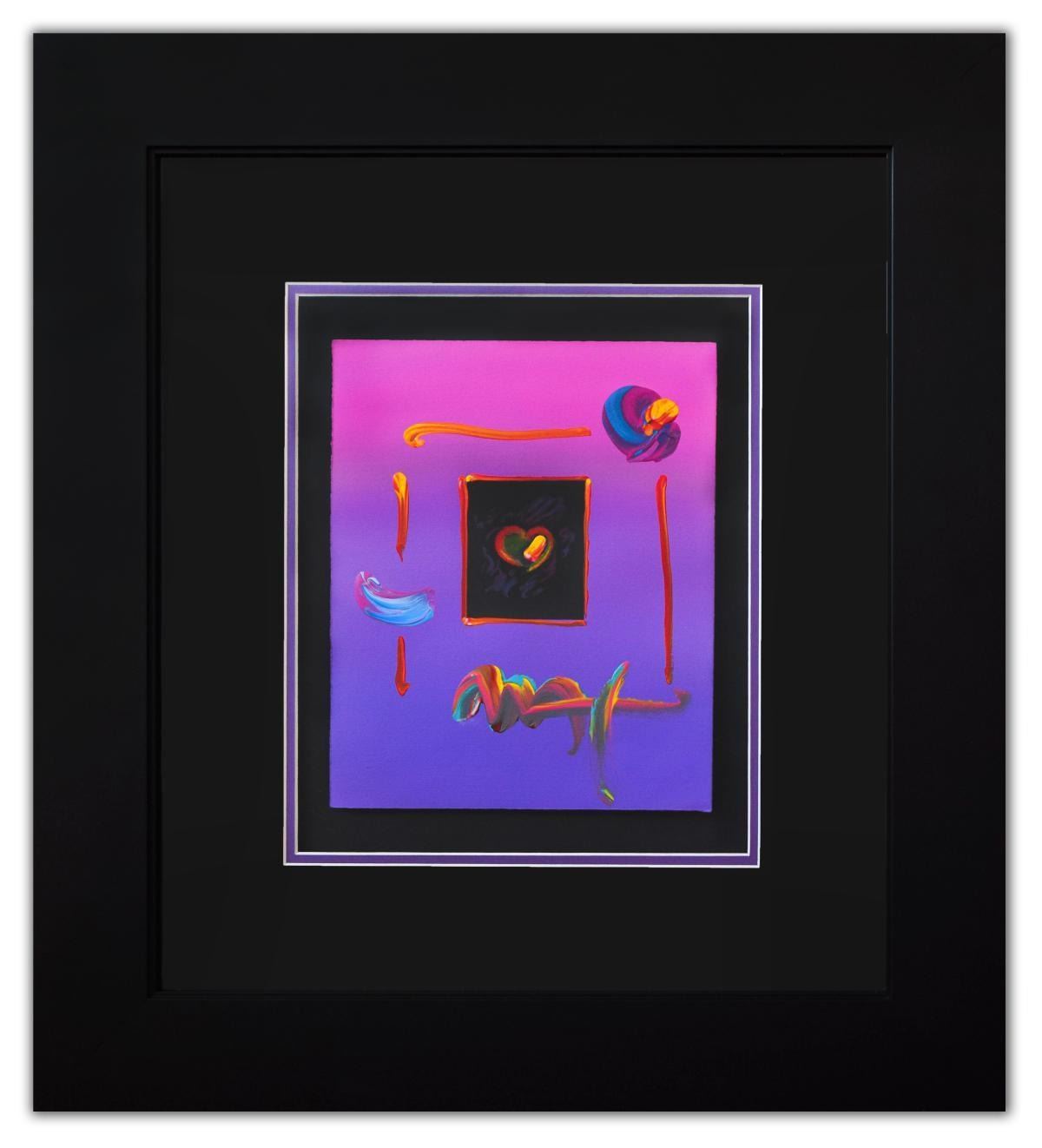 Artist: Peter Max. Medium: Original Mixed Media. Title: Heart Suite III: Heart II Ver. I#128. Size (Unframed): 11" x 8". Size (Framed): 25" x 23". Certificate of Authenticity: From Peter Max Studio. Additional: Custom framed. Reference# 14591.