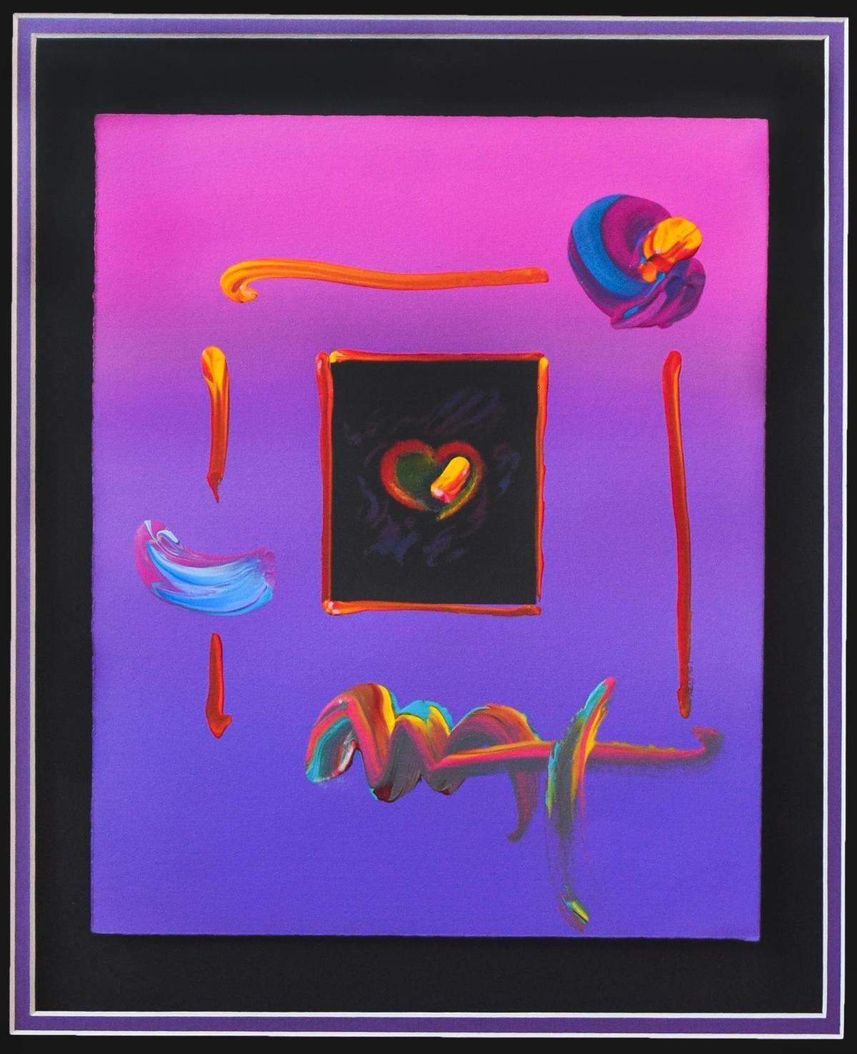 Artist: Peter Max. Medium: Original Mixed Media. Title: Heart Suite III: Heart II Ver. I#128. Size (Unframed): 11" x 8". Size (Framed): 25" x 23". Certificate of Authenticity: From Peter Max Studio. Additional: Custom framed. Reference# 14591.