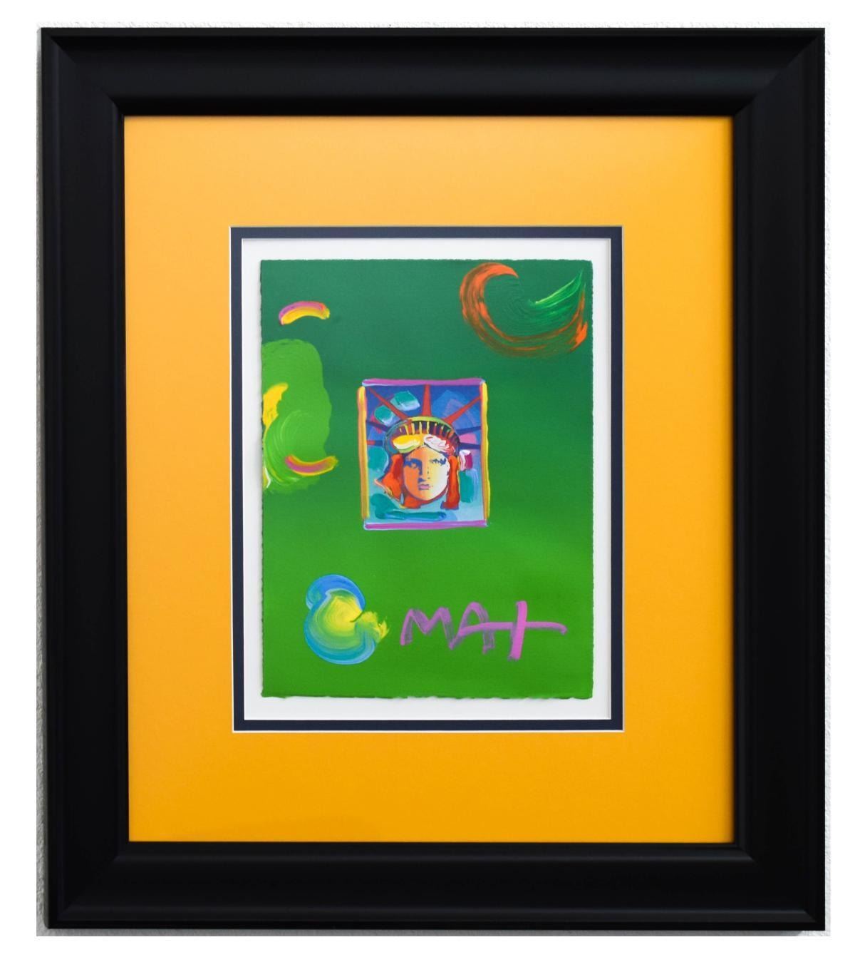 Artist: Peter Max. Medium: Original Mixed Media. Title: Liberty Head II Ver. I #144. Size (Unframed): 11" x 8.5". Certificate of Authenticity: From Peter Max Studio. Additional: Only one of a kind. Custom framed. Catalogue#: 411500. Reference# 11767.