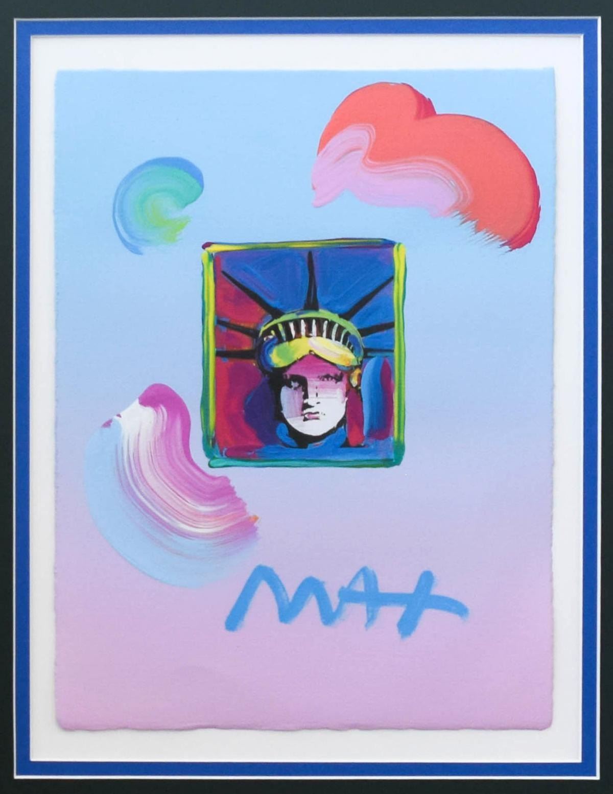 Artist: Peter Max. Medium: Original Mixed Media. Title: Liberty Head II Ver. I#212. Size (Unframed): 11" x 8.5". Size (Framed): 22" x 19.5". Certificate of Authenticity: From Peter Max Studio. Additional: Custom Framed. Catalogue#: 412562. Reference# 12706.