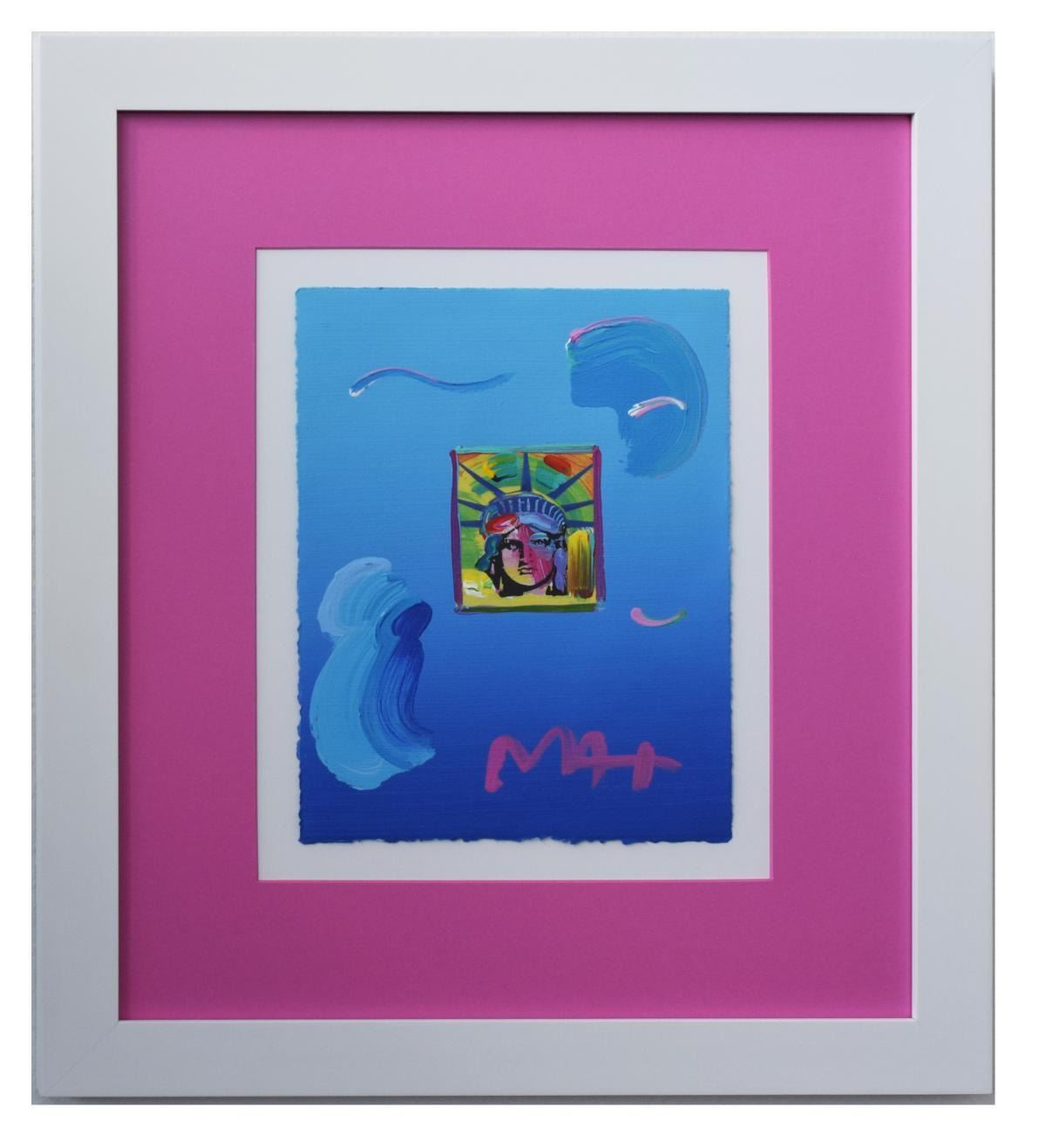 Artist: Peter Max. Medium: Original Mixed Media. Title: Liberty Head. Size (Unframed): 11" x 8.5". Size (Framed): 21" x 19". Certificate of Authenticity: By Peter Max Studios. Reference# 11290.