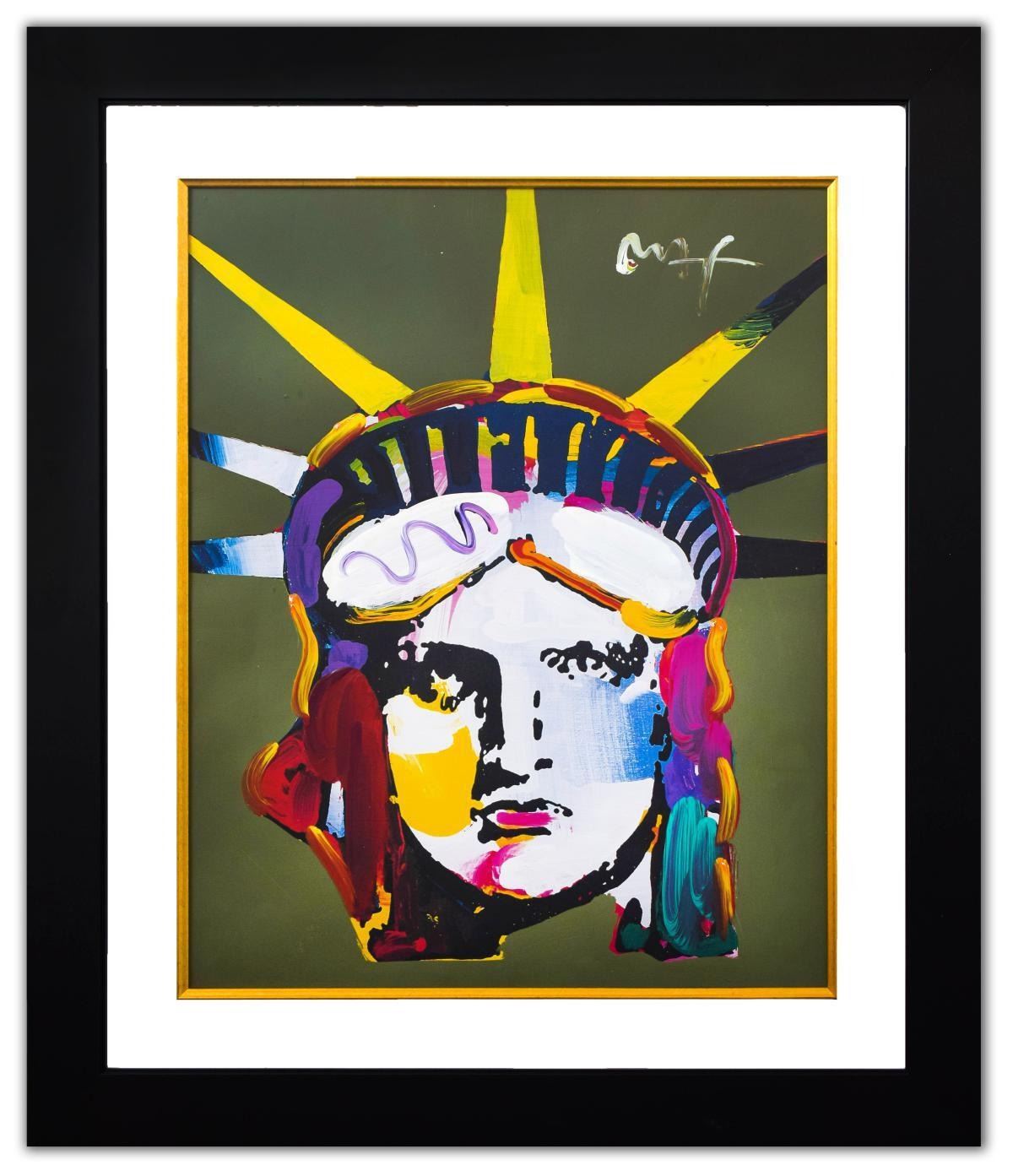 Artist: Peter Max. Medium: Original Mixed Media. Title: Liberty Head. Size (Unframed): 30" x 24". Size (Framed): 41" x 35". Certificate of Authenticity: From Peter Max Studio. Additional: Custom framed. Reference# 14836.