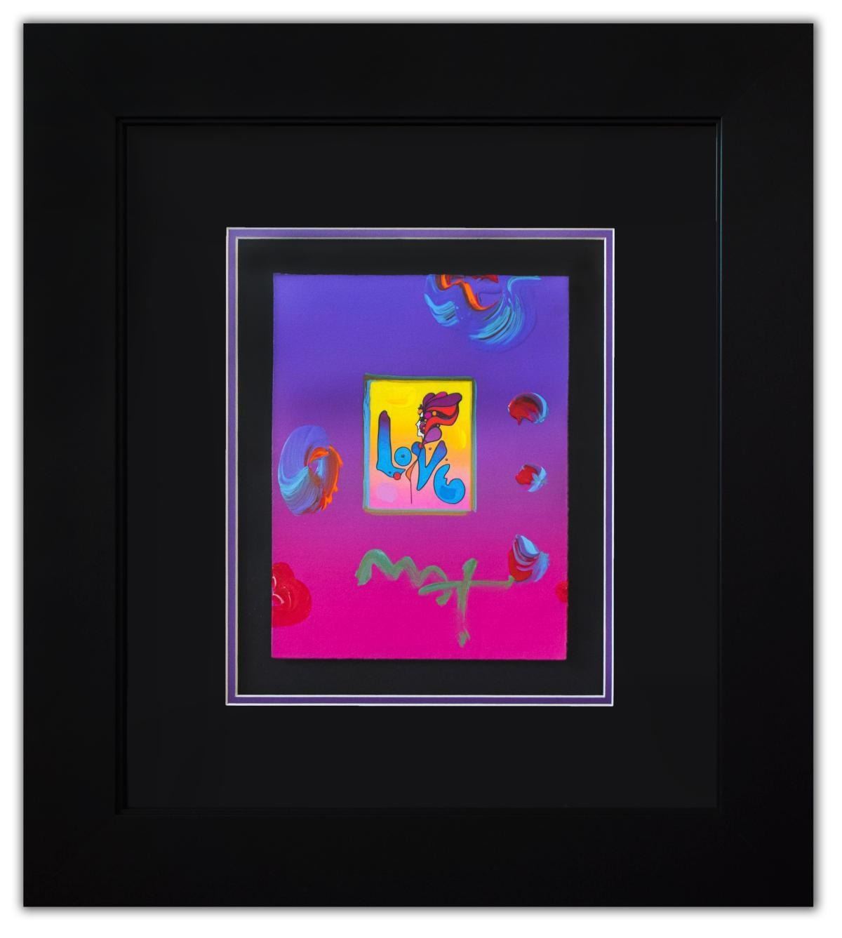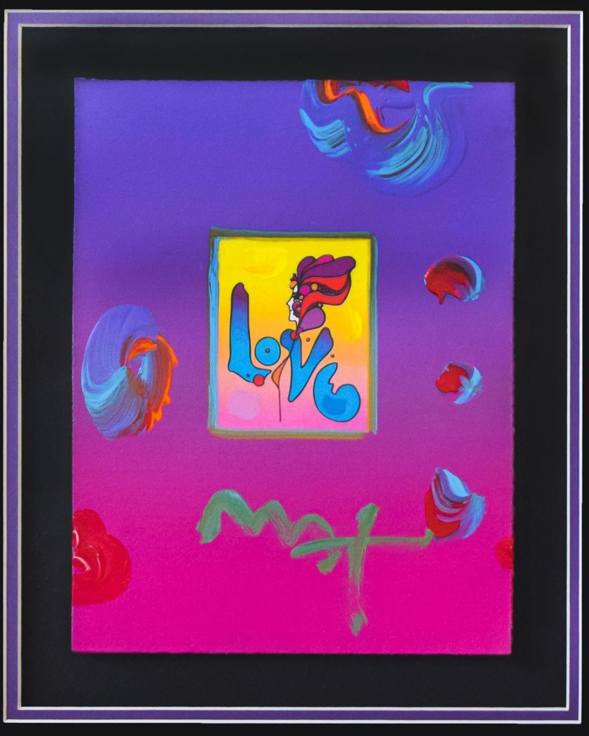 Artist: Peter Max. Medium: Original Mixed Media. Title: Love Ver. I #148. Size (Unframed): 11" x 8.5". Size (Framed): 25" x 23". Certificate of Authenticity: From Peter Max Studio. Additional: Custom framed. Reference# 14592.