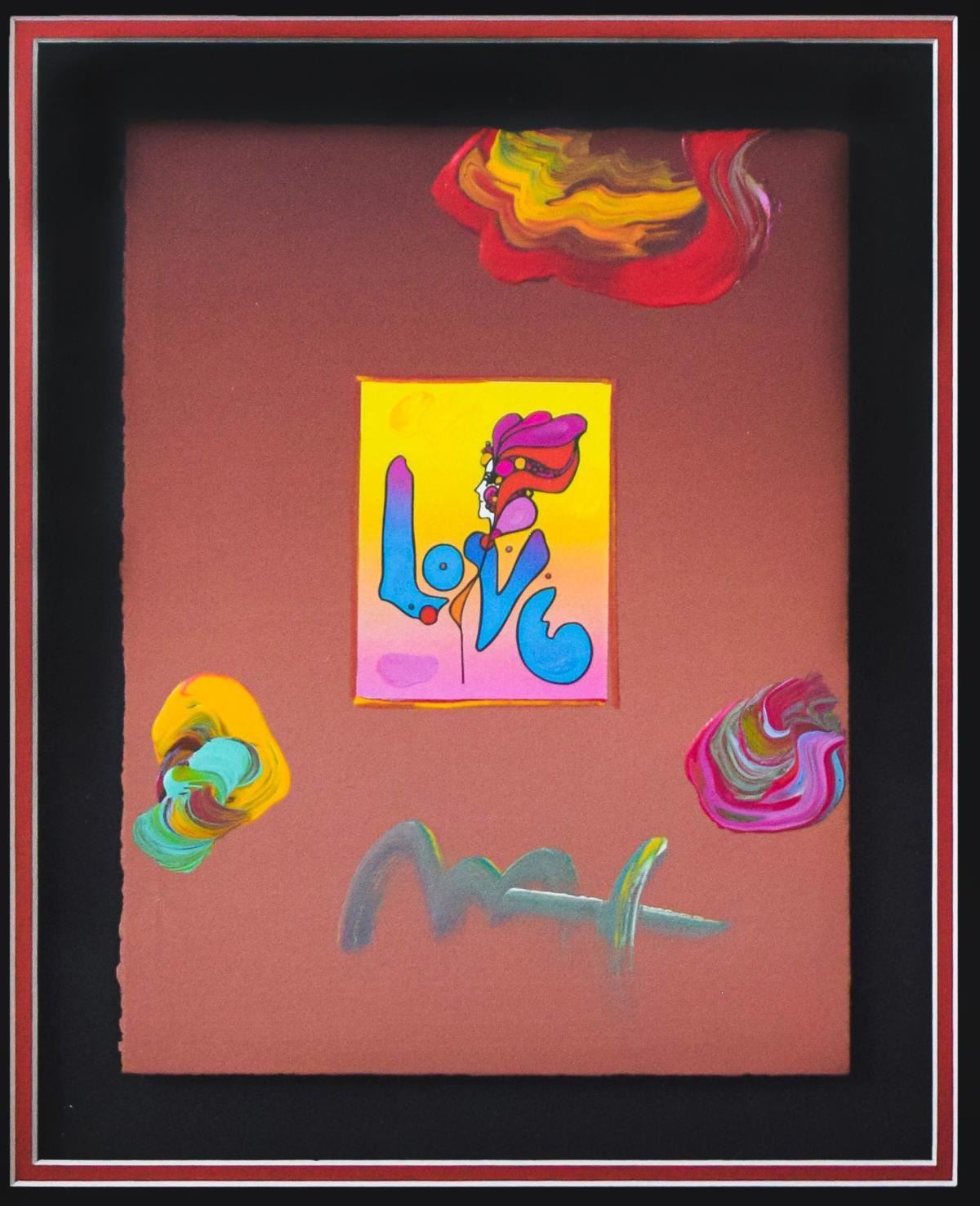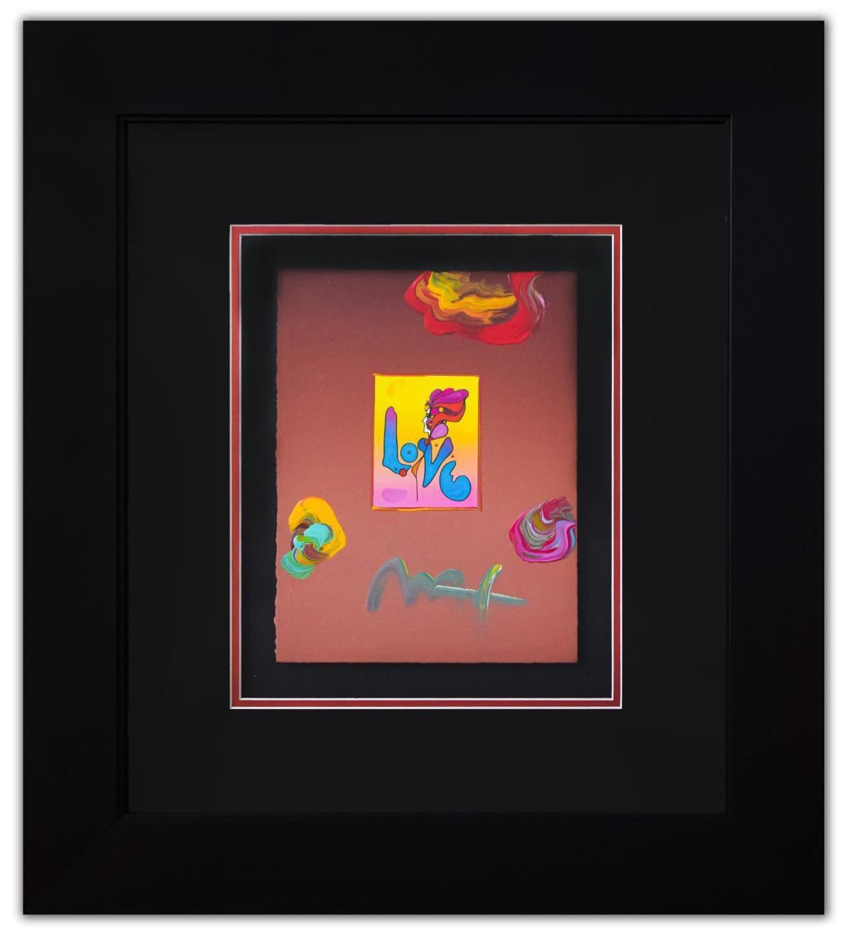Artist: Peter Max. Medium: Original Mixed Media. Title: Love Ver. I #24. Size (Unframed): 11" x 8.5". Size (Framed): 25" x 23". Certificate of Authenticity: From Peter Max Studio. Additional: Custom framed. Reference# 14594.