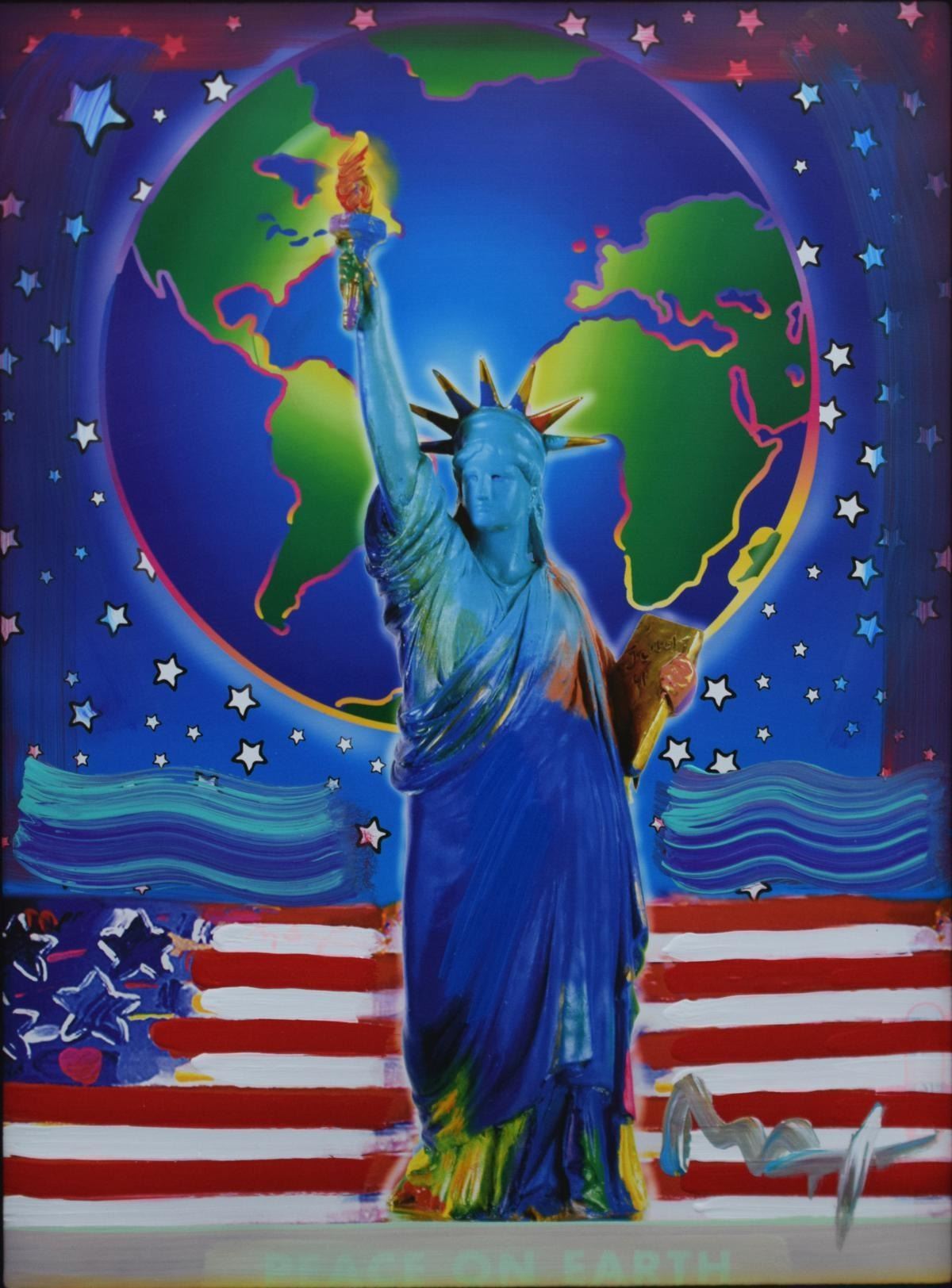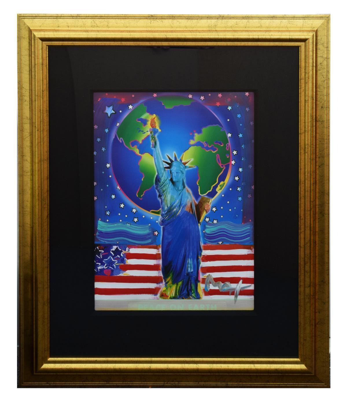 Artist: Peter Max. Medium: Original Mixed Media. Title: Peace On Earth. Size (Unframed): 24" x 18". Size (Framed): 39" x 34". Certificate of Authenticity: From Park West Gallery. Additional: Only one of a kind. Custom framed. Certificate of authnticity and Apprisal from Park West Gallery are included. Catalogue#: 118298. Reference# 11376.