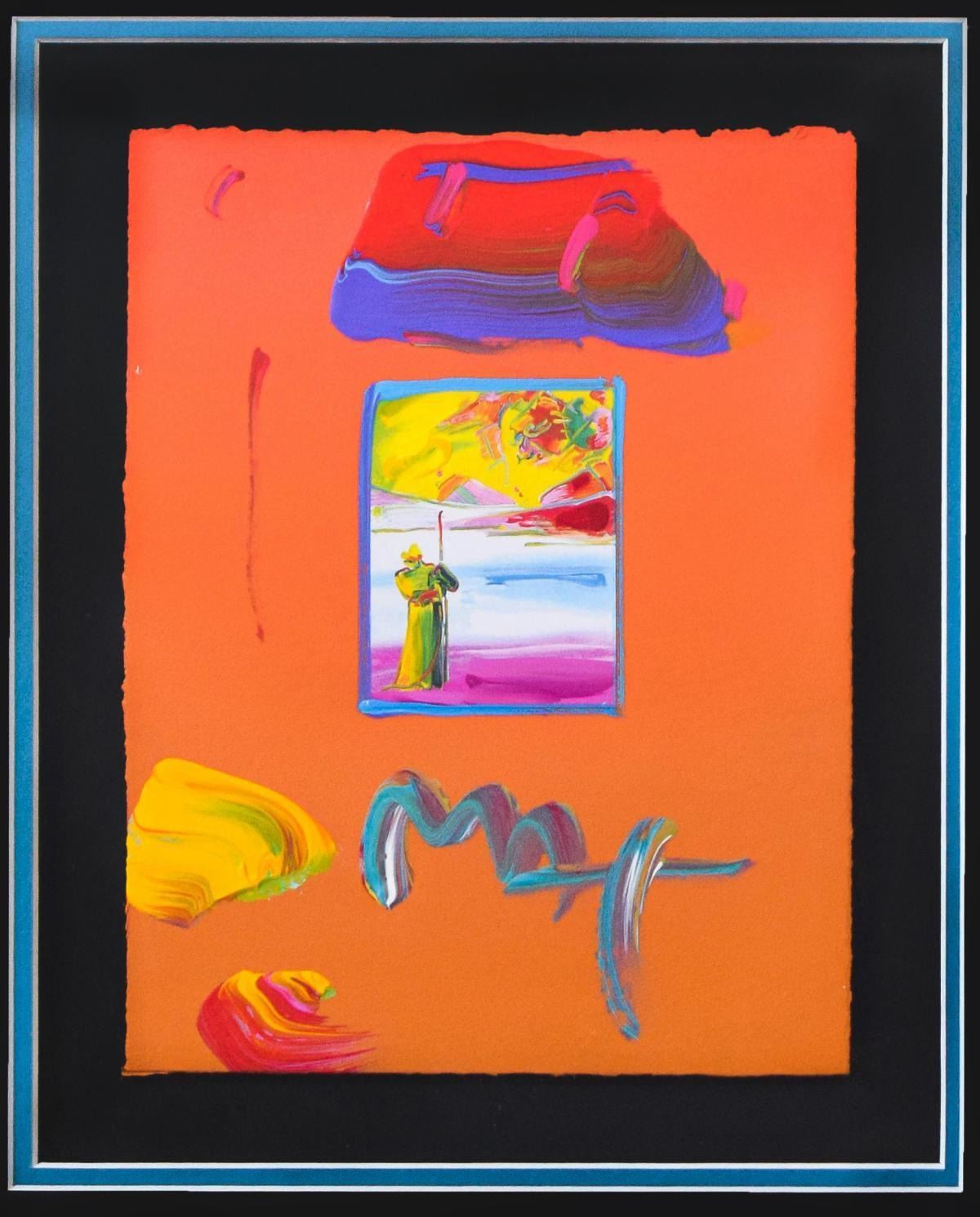 Artist: Peter Max. Medium: Original Mixed Media. Title: Sage and Profile Ver. I #113. Size (Unframed): 11" x 8.5". Size (Framed): 25" x 23". Certificate of Authenticity: From Peter Max Studio. Additional: Custom framed. Reference# 14596.