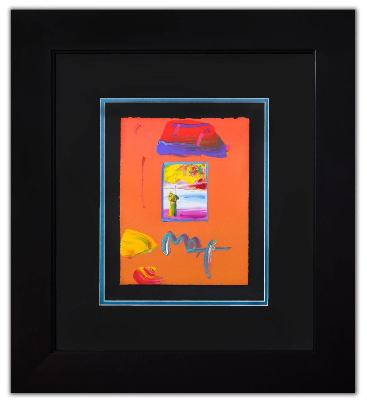 Artist: Peter Max. Medium: Original Mixed Media. Title: Sage and Profile Ver. I #113. Size (Unframed): 11" x 8.5". Size (Framed): 25" x 23". Certificate of Authenticity: From Peter Max Studio. Additional: Custom framed. Reference# 14596.