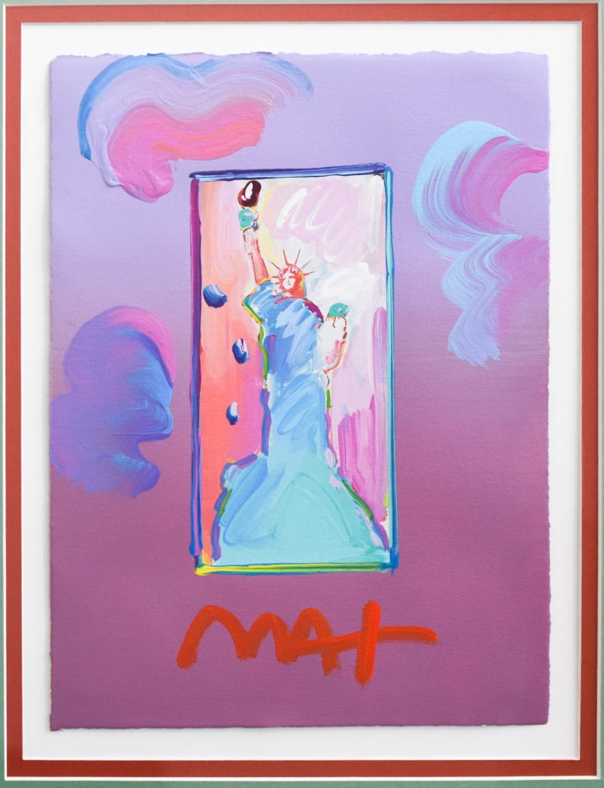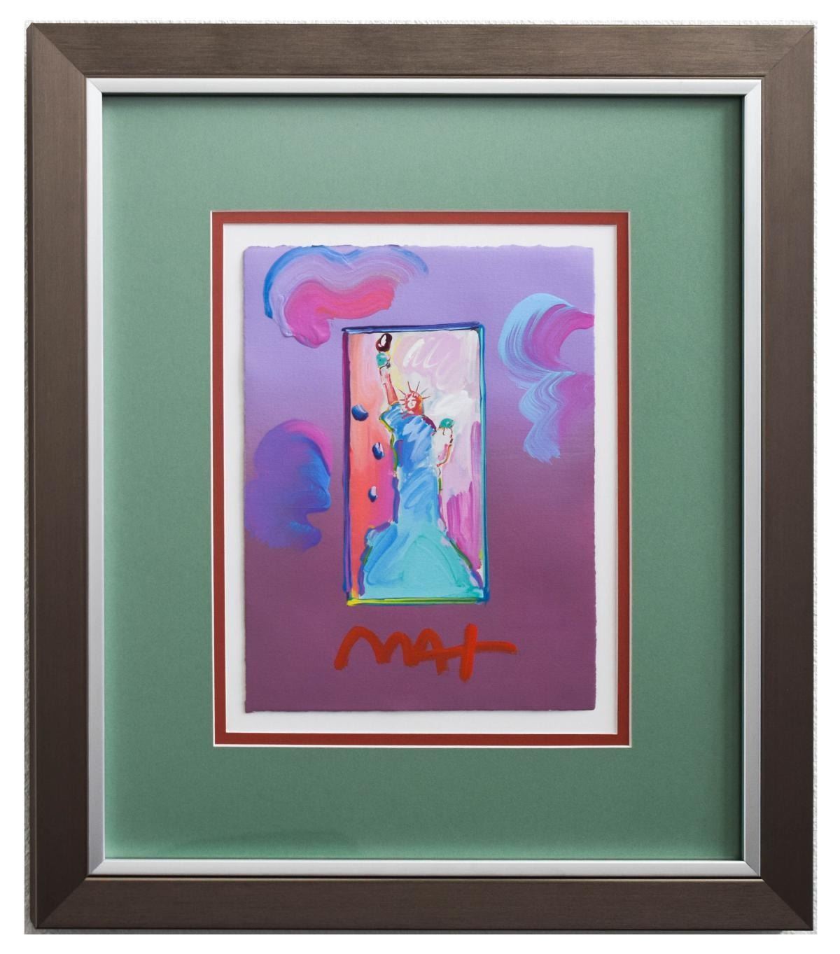 Artist: Peter Max. Medium: Original Mixed Media. Title: Statue of Liberty Ver. #148. Size (Unframed): 11" x 8.5". Size (Framed): 21.5" x 19". Certificate of Authenticity: From Peter Max Studio. Additional: Only one of a kind. Custom framed. Catalogue#: 412250. Reference# 11777.
