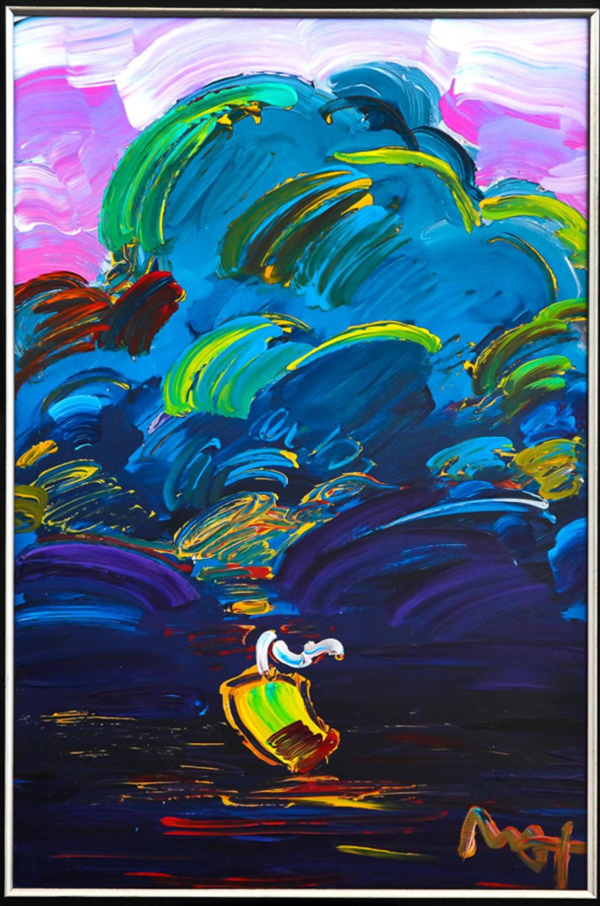 Artist: Peter Max. Medium: Original Mixed Media. Title: Summer Storm. Size (Unframed): 36" x 24". Measures approx. (Framed): 46" x 34". Certificate of Authenticity: Is included. Additional: Custom framed. Reference# 17897.