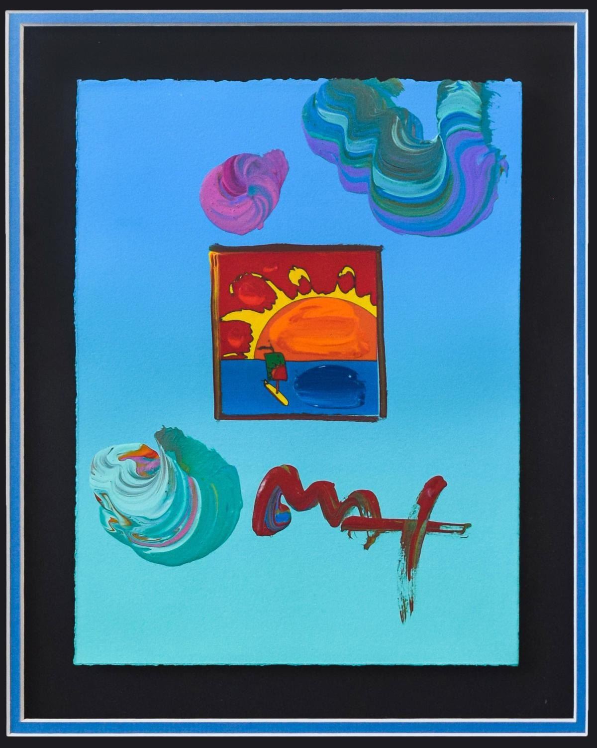 Artist: Peter Max. Medium: Original Mixed Media. Title: Sunrise Sail 2006 Ver. I #95. Size (Unframed): 11" x 8.5". Certificate of Authenticity: From Peter Max Studio. Additional: Custom framed. Reference# 14655.