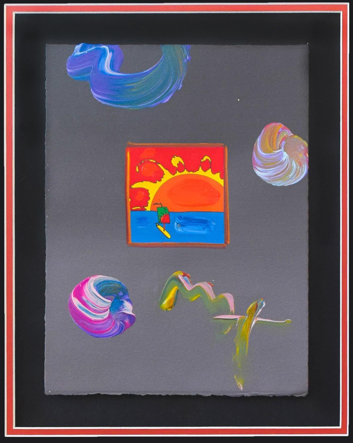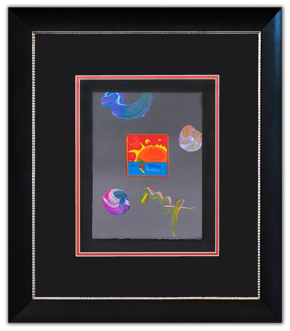 Artist: Peter Max. Medium: Original Mixed Media. Title: Sunrise Sail 2006 Ver. I #97. Size (Unframed): 11" x 8.5". Size (Framed): 23.5" x 21". Certificate of Authenticity: From Peter Max Studio. Additional: Custom framed. Reference# 14648.
