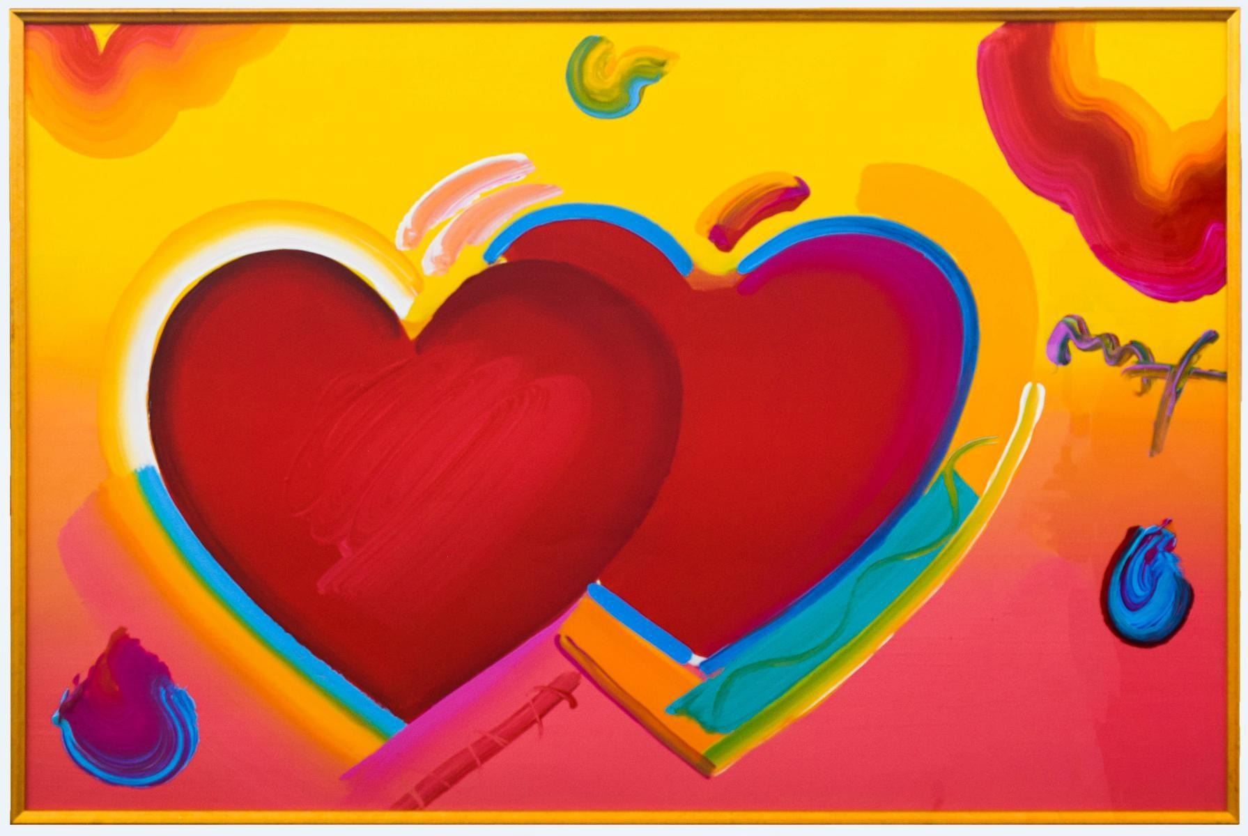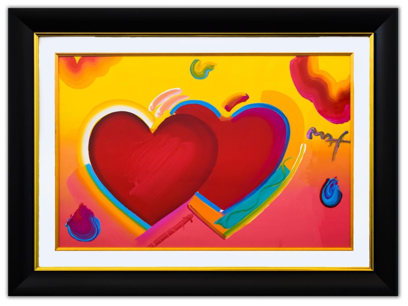 Artist: Peter Max. Medium: Original Mixed Media. Title: Two Hearts As One. Size (Unframed): 24" x 36". Size (Framed): 34" x 46". Certificate of Authenticity: From Peter Max Studio. Additional: Custom framed. Reference# 14757.