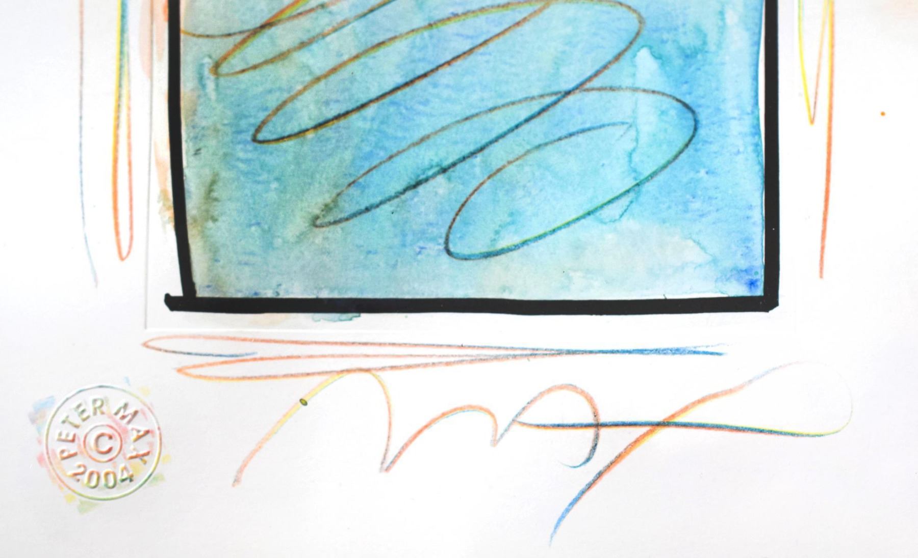 Artist: Peter Max. Medium: Original Mixed Media with Watercolor and Color Pencil. Title: Sage (B&W Series). Size (Unframed): 8" x 6". Size (Framed): 20" x 18". Certificate of Authenticity: From Peter Max Studio. Additional: A uniquely-overpainted lithograph with water-color and colored pencil. Custom framed. Reference# 15813.